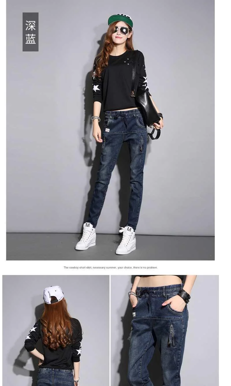 Джинсы-шаровары женские с эластичным поясом, повседневные брюки из ...