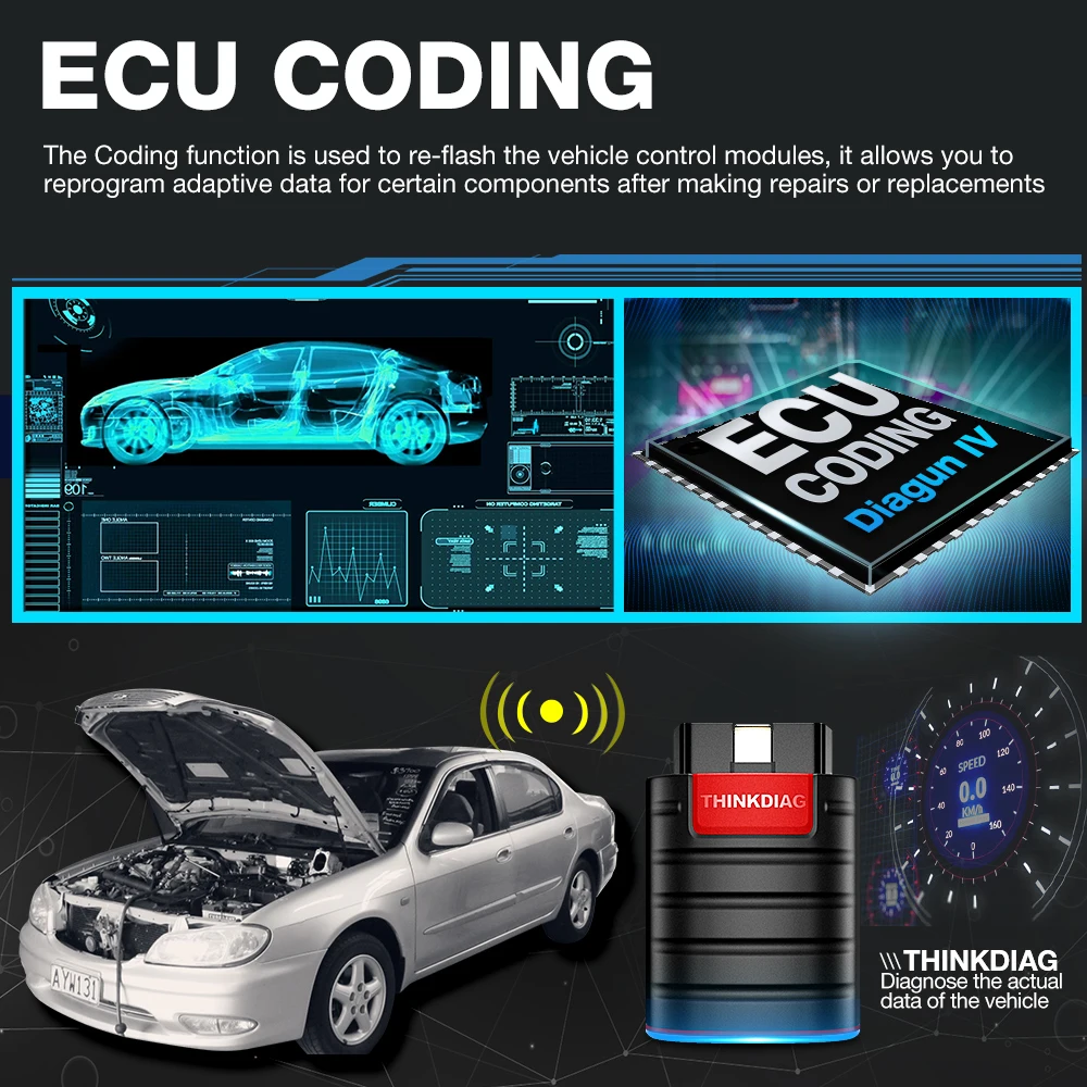 Использует приложение ThinkDiag для изменения адаптивных данных для модулей управления транспортным средством, после ремонта или замены деталей транспортного средства, включая:[Окно питания | Вход с подсветкой Предупреждение | Управление на светильник | Скользящая крыша | Кондиционер | Дисплей | Преобразование единиц | Ввод и запуск | Управление PSD и PBD | Сиденье...]