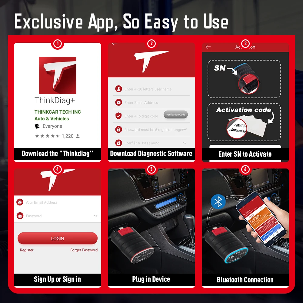 Шаг 1, загрузите и установите приложение (название приложения: thinkdiag)Шаг 2, откройте приложение и зарегистрируйтесь и Войдите в систему.Шаг 3, активируйте Thinkdiag.Шаг 4, подключите Thinkdiag к вашему автомобилю и включите зажигание транспортного средства во время поворота двигателя, подключите устройство, Загрузите программное обеспечение и начните диагностику.