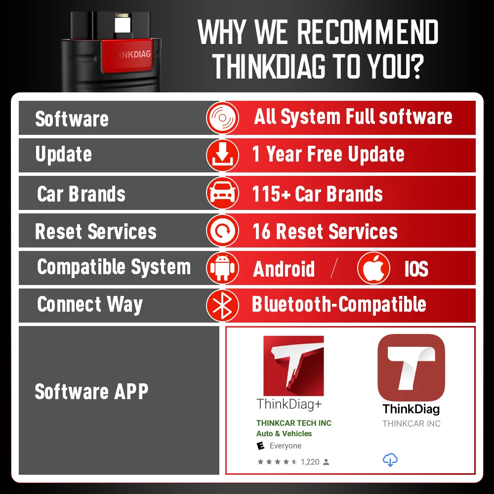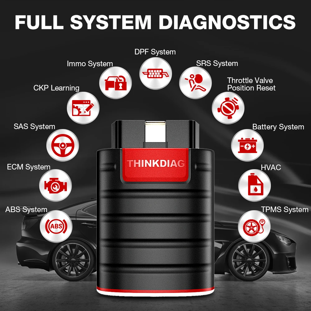 Полный сканер Thinkcar THINKDIAG, 1 год бесплатного обновления всех систем, 16 сбросов, автоматический OBD2 сканер OBDII, диагностический инструмент PK AP200, считыватель