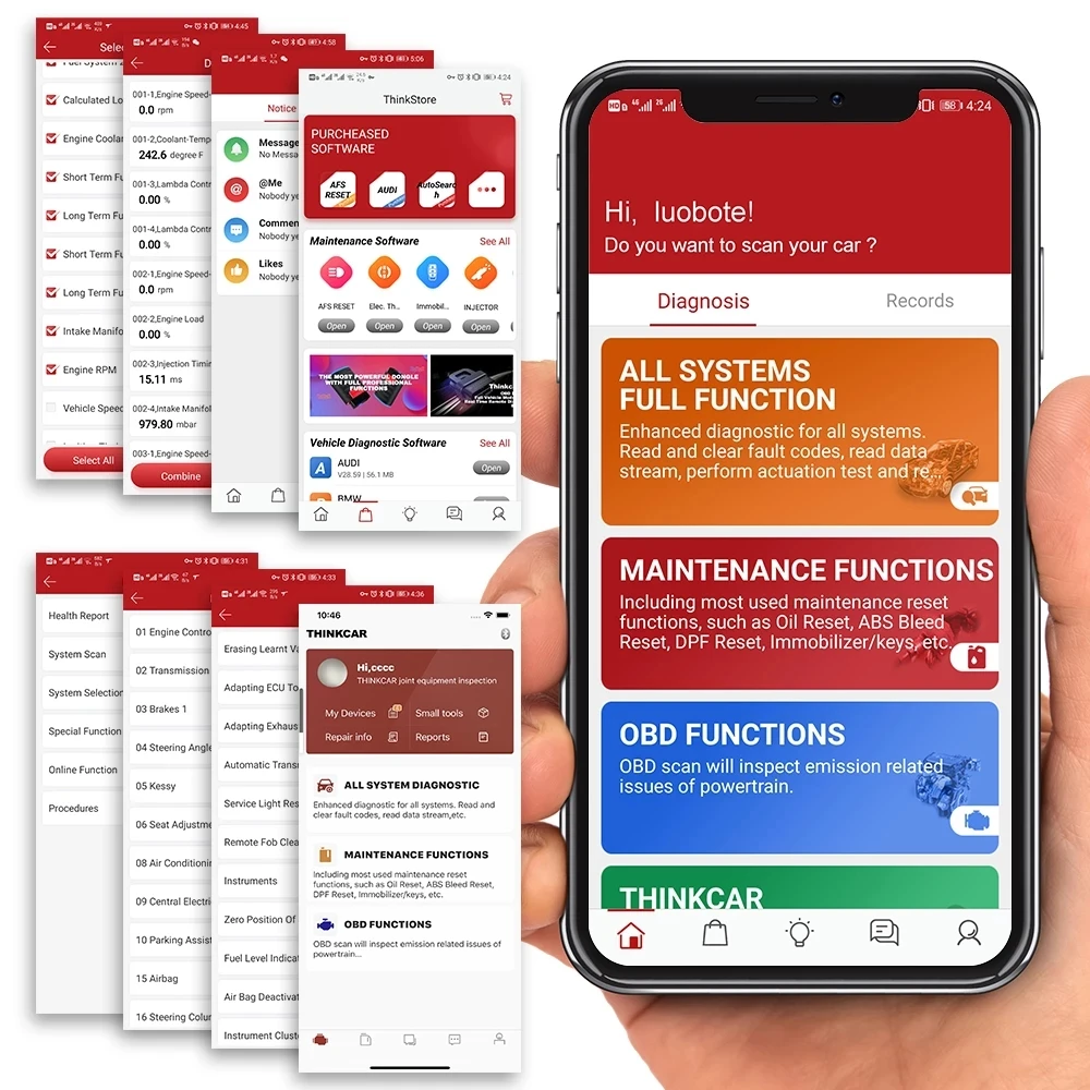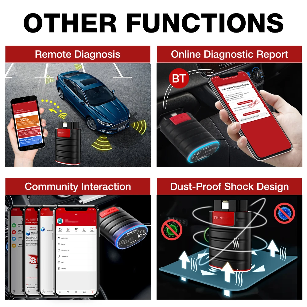 Почему мы рекомендуем Thinkdiag новую версию для вас?Первый интеллектуальный ключ OBDII с полным диагностическим уровнем OE!1. Считывание кодов неисправностей для всех систем, таких как ECM, TCM, ABS, SRS, BCM, IMM, BMS, TPMS, SAS, топливная система, светильник, система стеклоочистителя и т. д.2. Двунаправленный/Активный тест + кодирование ECU + адаптация + соответствие3. Полный OBD II и EOBD функции для полного сканирования системы4. 16 функций обслуживания + инструмент для автоматического сканирования5. Поддержка 115 марок автомобилей6. Прямая передача данных + запись данных + Печать отчета о состоянии здоровья автомобиля + удаленный диагностический Автомобильный сканер7. Сообщество владельцев транспортных средств8. Совместимость с телефонами Android / iOS и планшетами9. Размер ладони, портативный и мощный.
