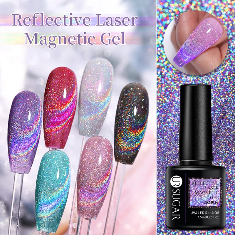 Магнитный Радужный гель UR SUGAR с фиолетовым отражающим котом, лак для ногтей с радужным блеском, удаляемый замачиванием УФ-гель, сверкающий гель Auroras, лазер для ногтей