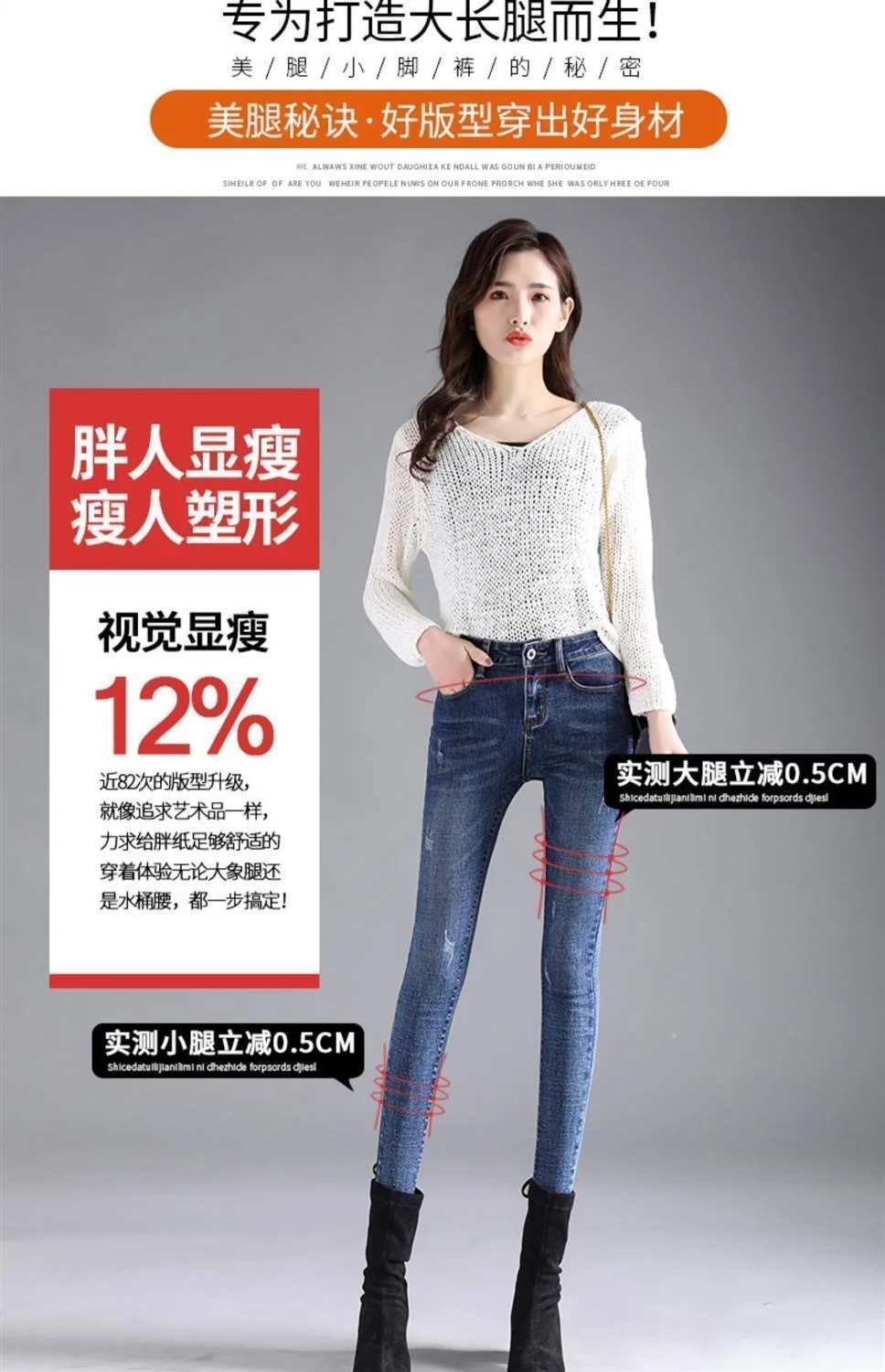 Уличная узкие женские джинсы Большие размеры штаны-карандаш стрейч ...