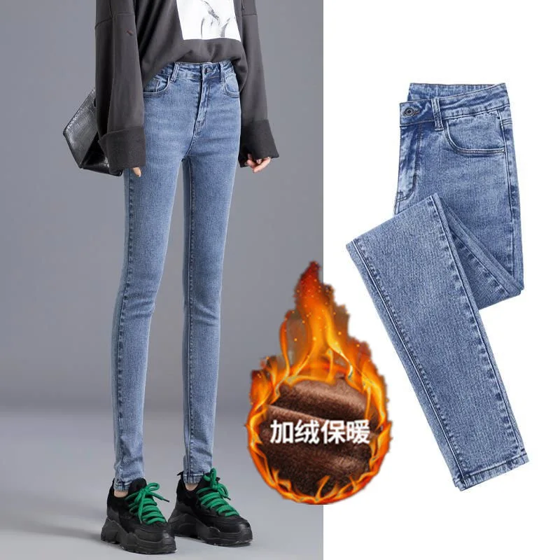 Женские облегающие джинсы с флисовой подкладкой, теплые облегающие ...