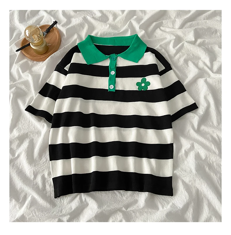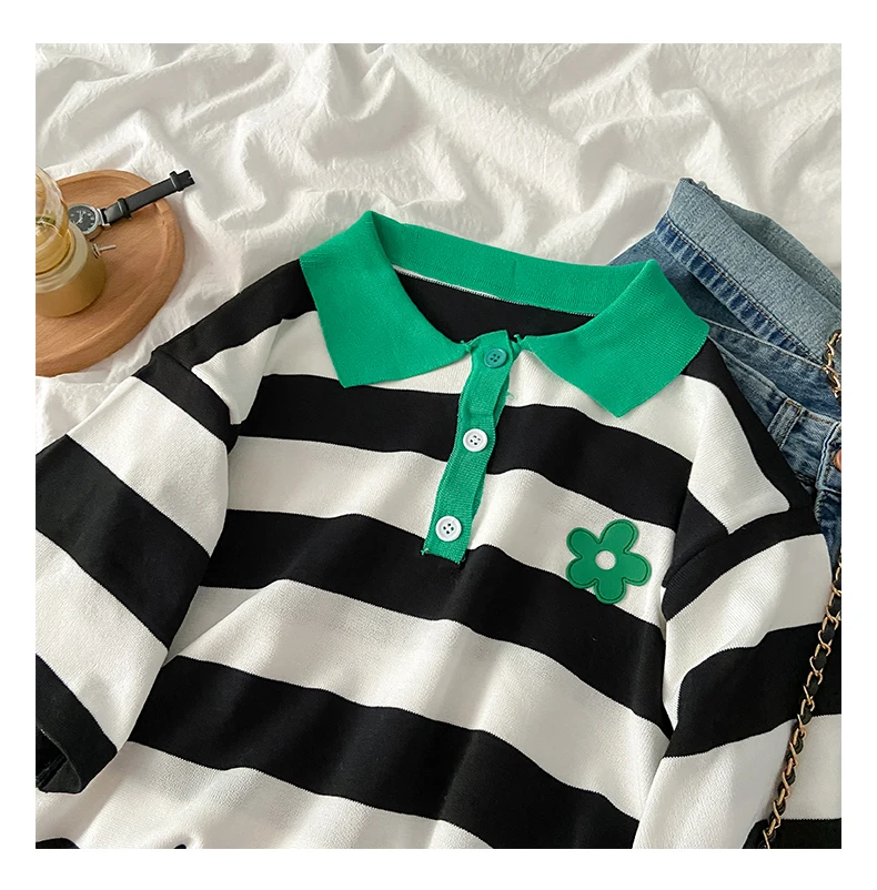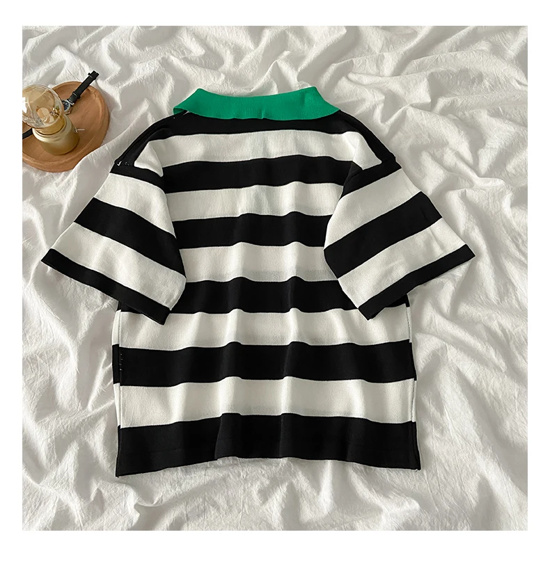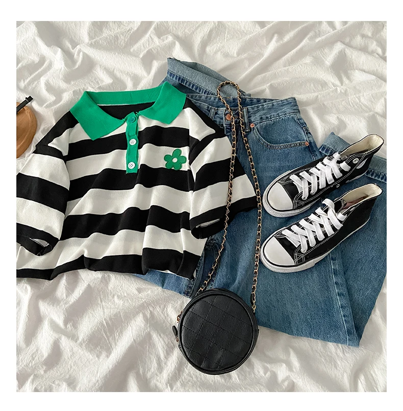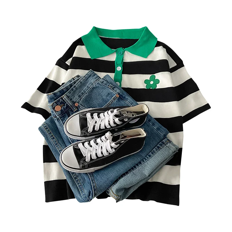 Летний модный брючный комплект для женщин, повседневный комплект из двух предметов, футболка в полоску и широкие брюки с высокой талией