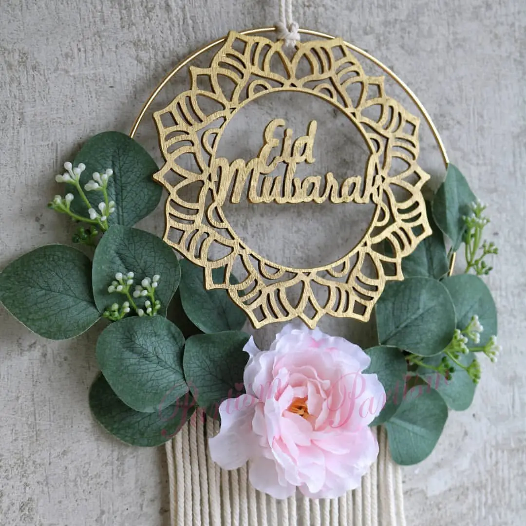 1 упаковка Eid Mubarak деревянные украшения для Рамадана Kareem DIY венки ислам домашнее настенное украшение мусульманские украшения для вечеринки металлические обручи