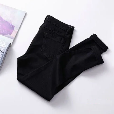 2019 Модные женские повседневные рваные обтягивающие брюки-карандаш...