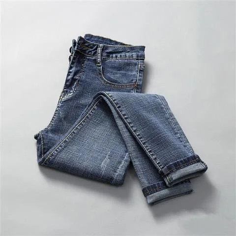 Женские джинсовые брюки на осень и зиму, эластичные прямые брюки