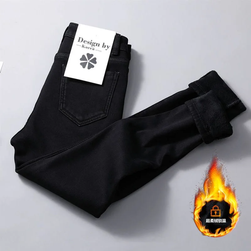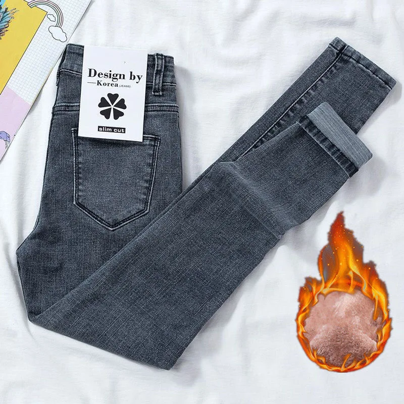 Зимние плотные бархатные женские джинсы с высокой талией, облегающие джинсы, простые флисовые теплые облегающие эластичные женские джинсовые брюки-карандаш, мешковатые джинсы