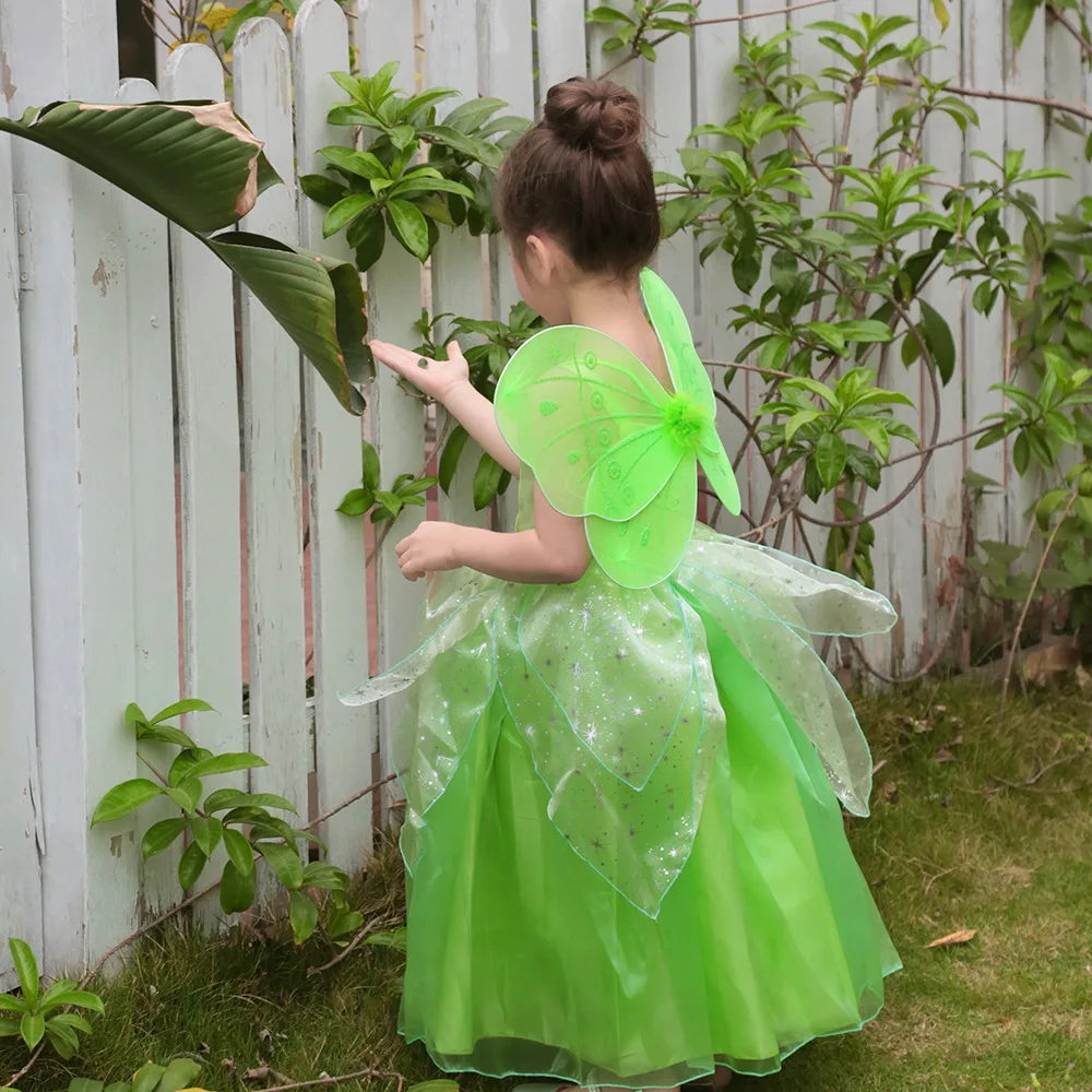 Костюм принцессы с крыльями фея Динь-Динь, зеленый, для Хэллоуина