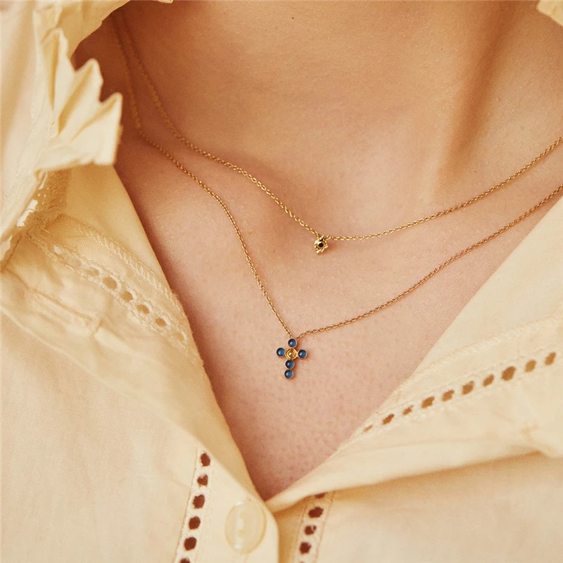 Женское Ожерелье из стерлингового серебра 925 пробы с имитацией жемчуга, подвеска в виде креста с эмалью синего и розового цвета, вечерние ювелирные изделия