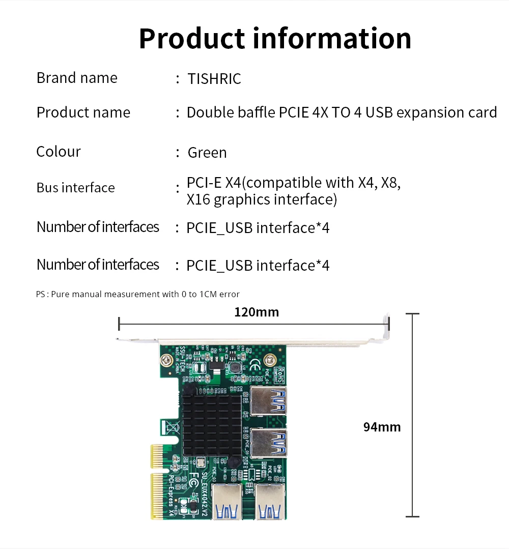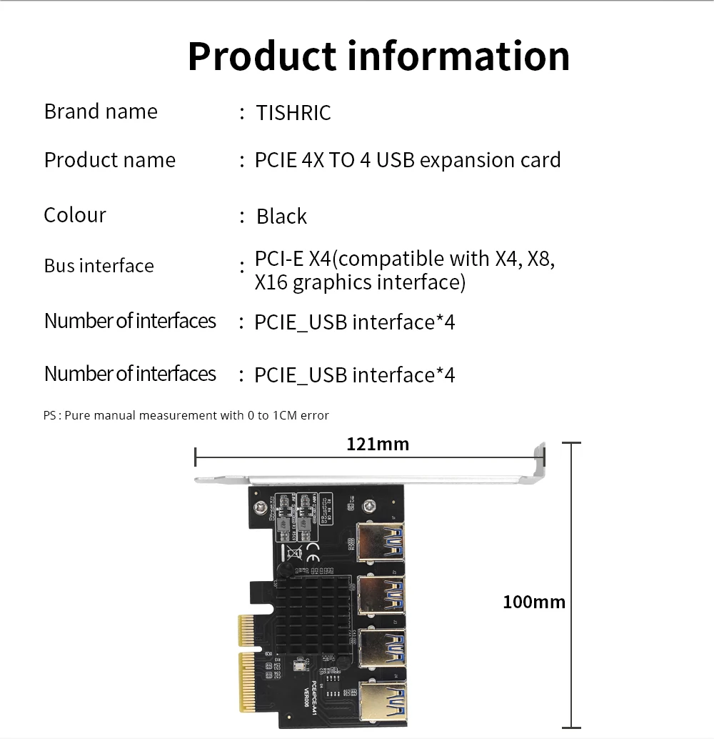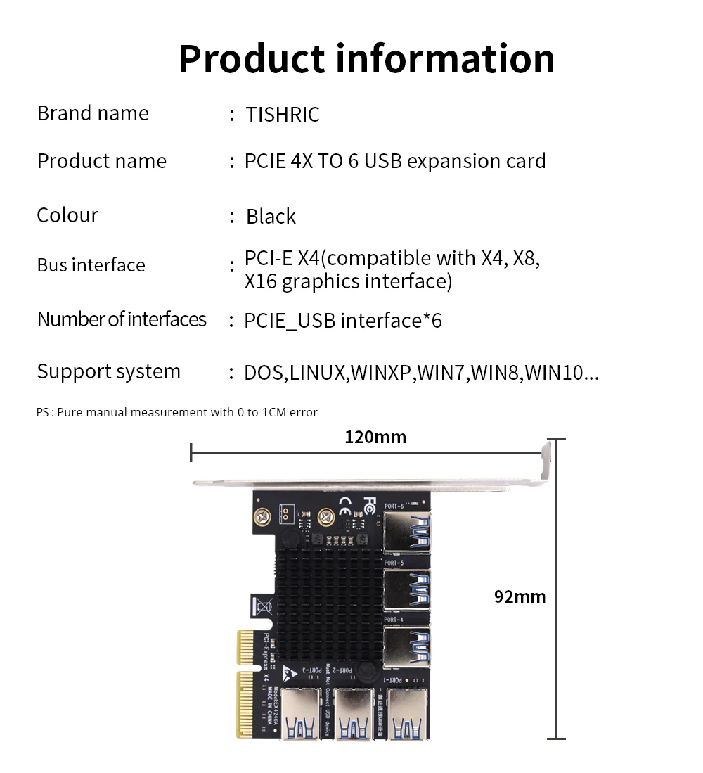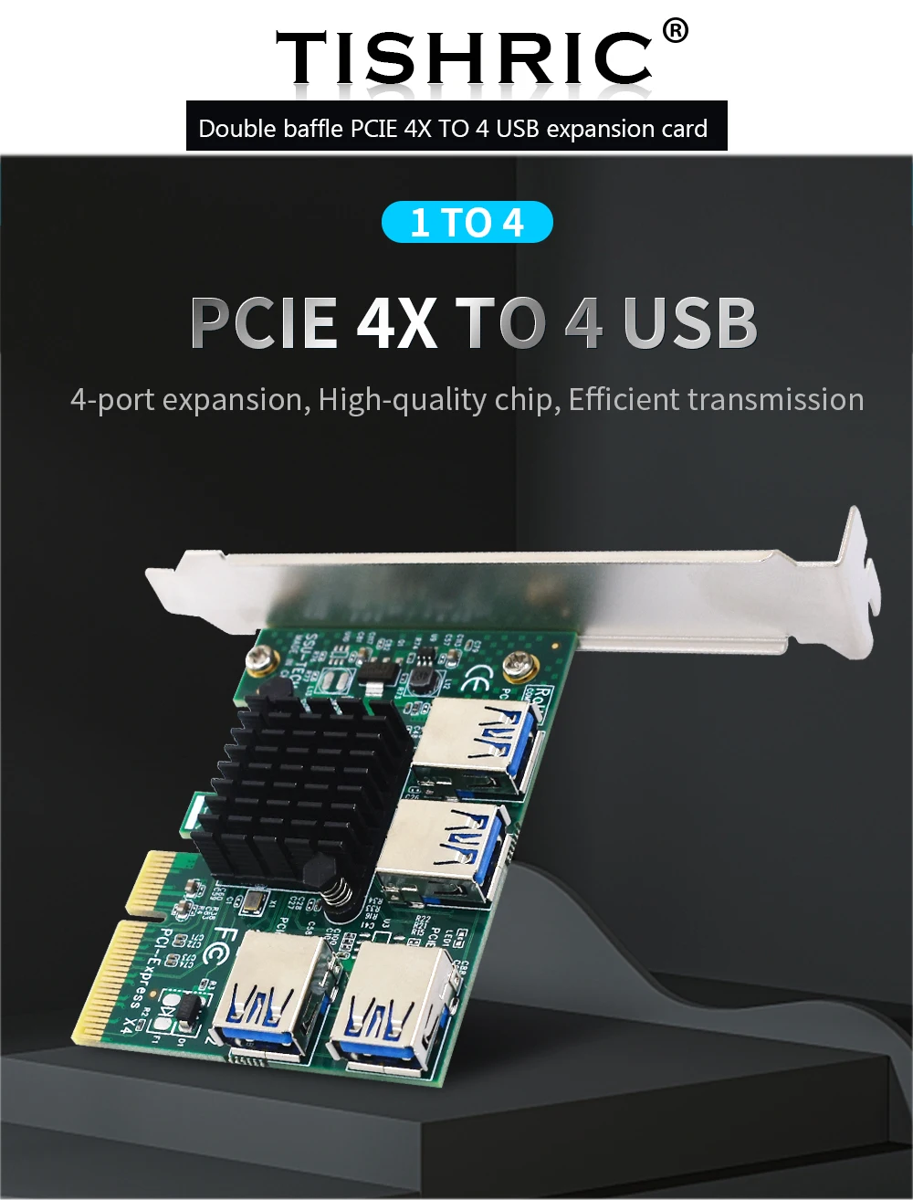 Плата расширения TISHRIC Pci Express, усилитель Pcie 4x на 6 Usb 3,...