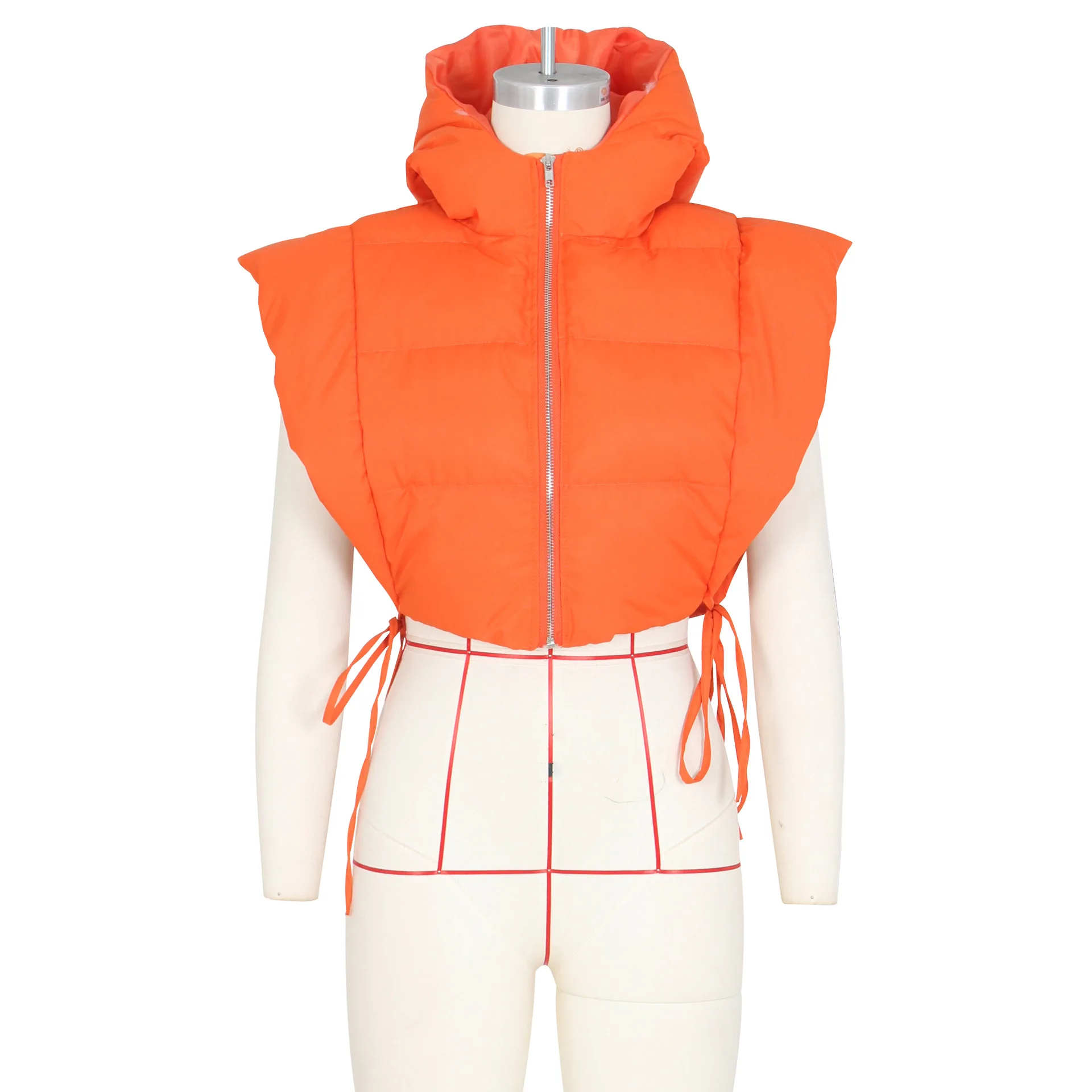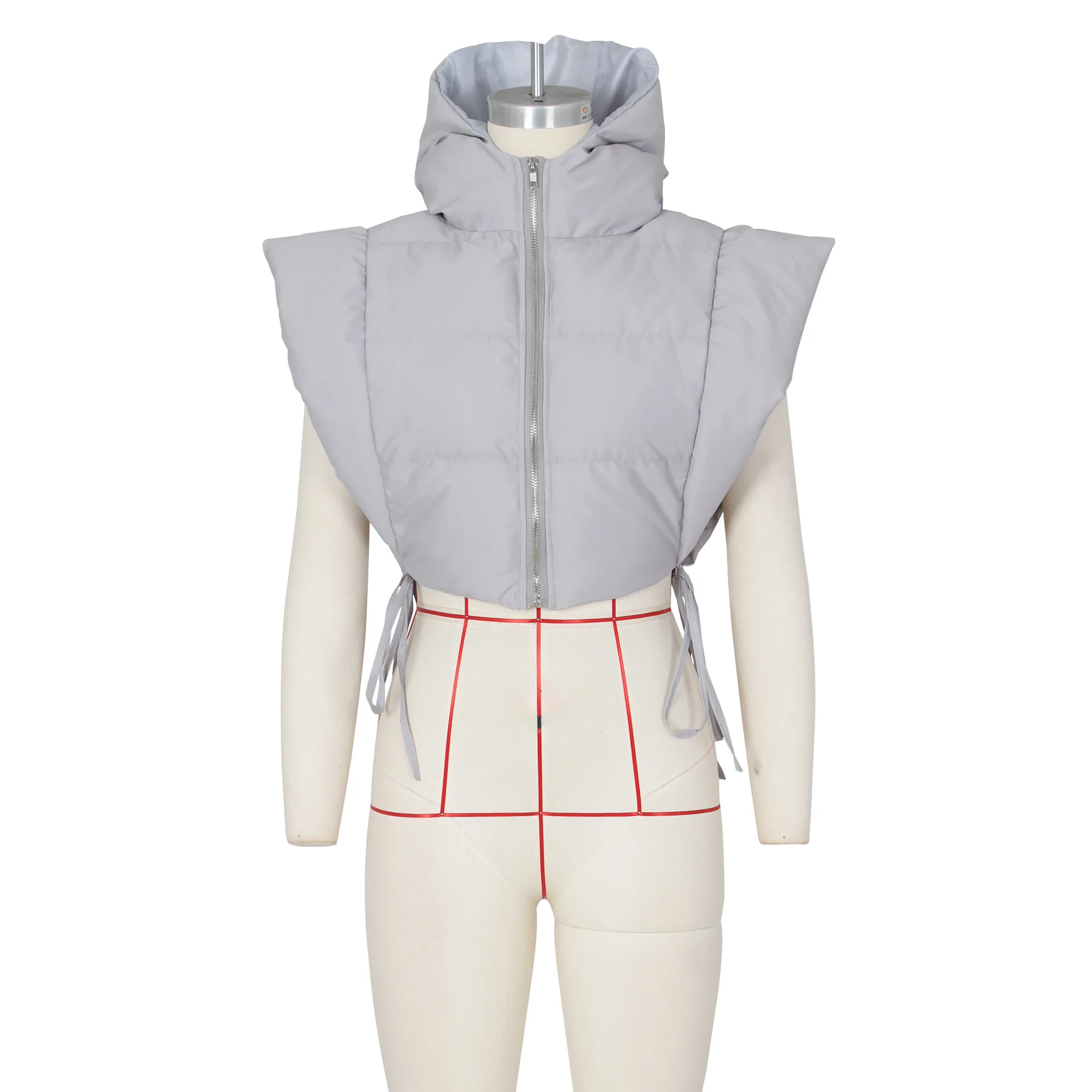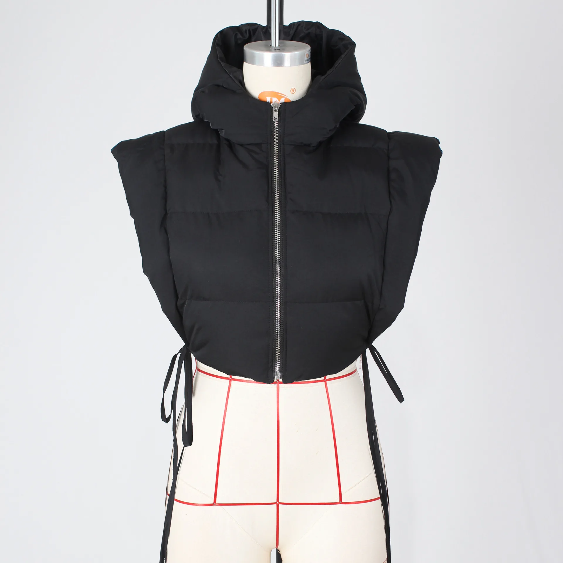 Пикантная куртка-пуховик, женские толстовки без рукавов на молнии, одежда Y2k для женщин, бандажная Клубная одежда с боковым поясом, пузырьки, укороченный топ на шнуровке