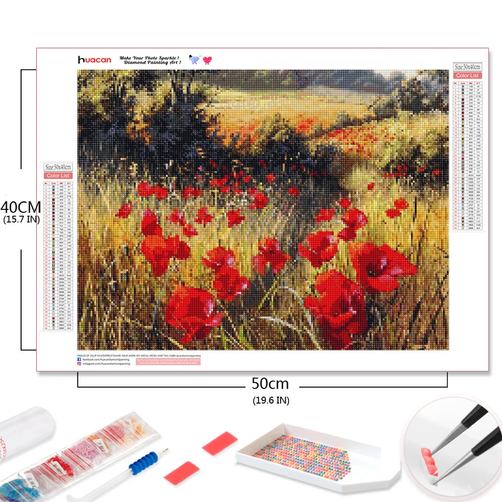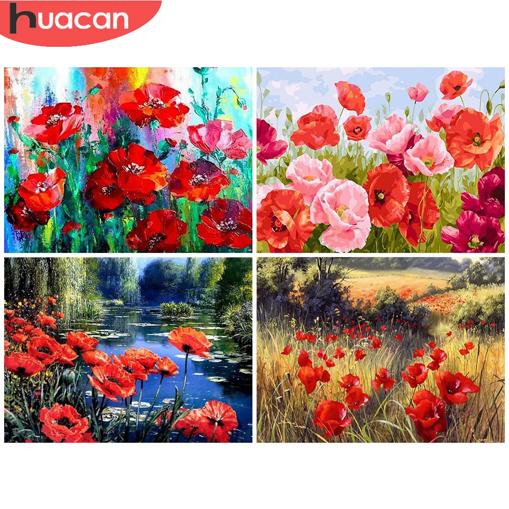 Алмазная живопись HUACAN, Мак, 5D DIY, искусственная вышивка, комплекты