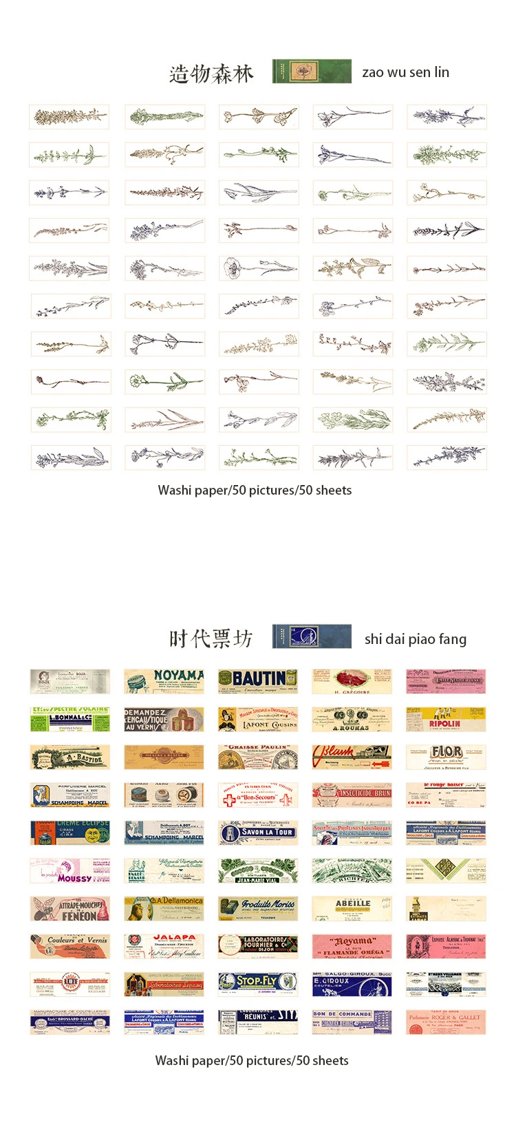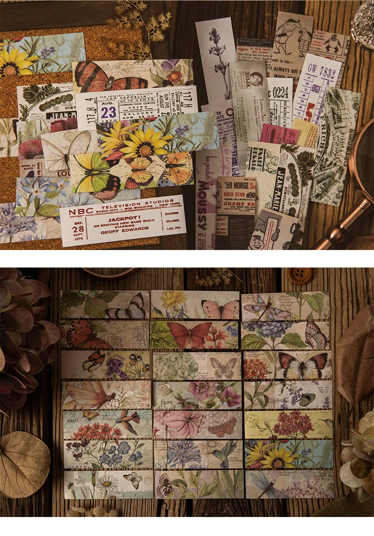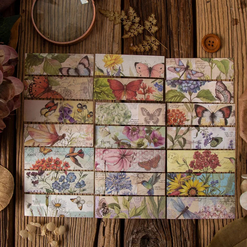 50 шт., длинные наклейки в стиле ретро с изображением бабочек и растений