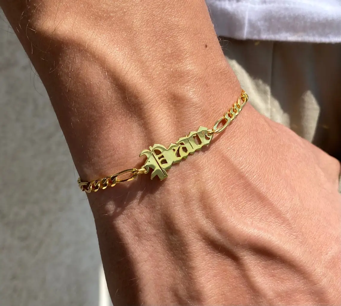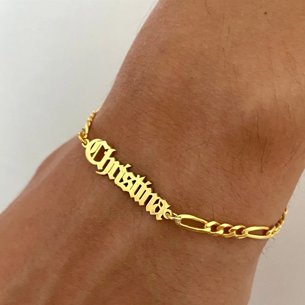 Мужской браслет-цепочка Фигаро с именем на английском языке