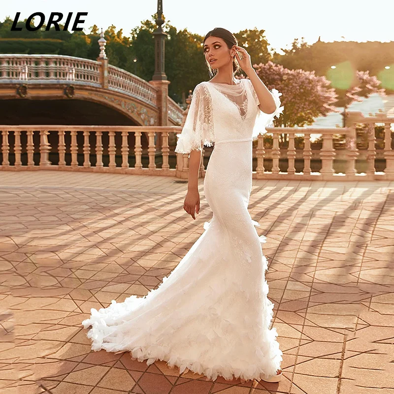 LORIE сексуальные кружевные свадебные платья русалки с открытыми пл...
