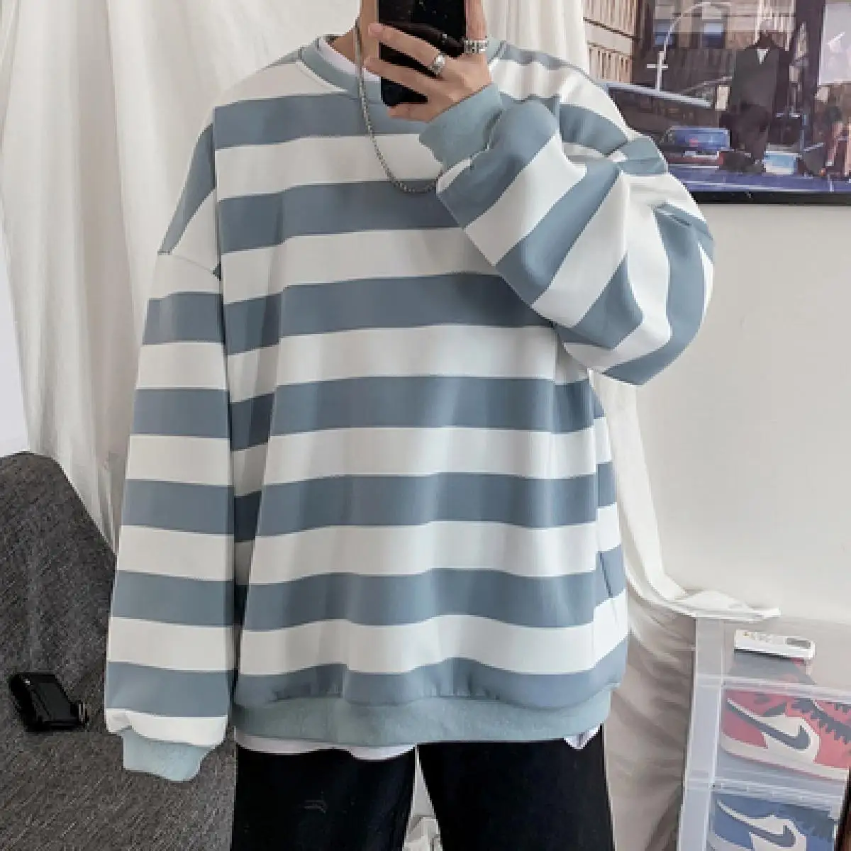Свитшот мужской классический в полоску, худи, Повседневная Уличная ...