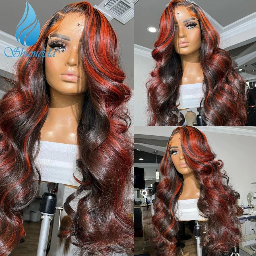 Парик Shumeida 13x4 из бразильских человеческих волос с предварительно выщипанными волосами оранжевого цвета, без клея