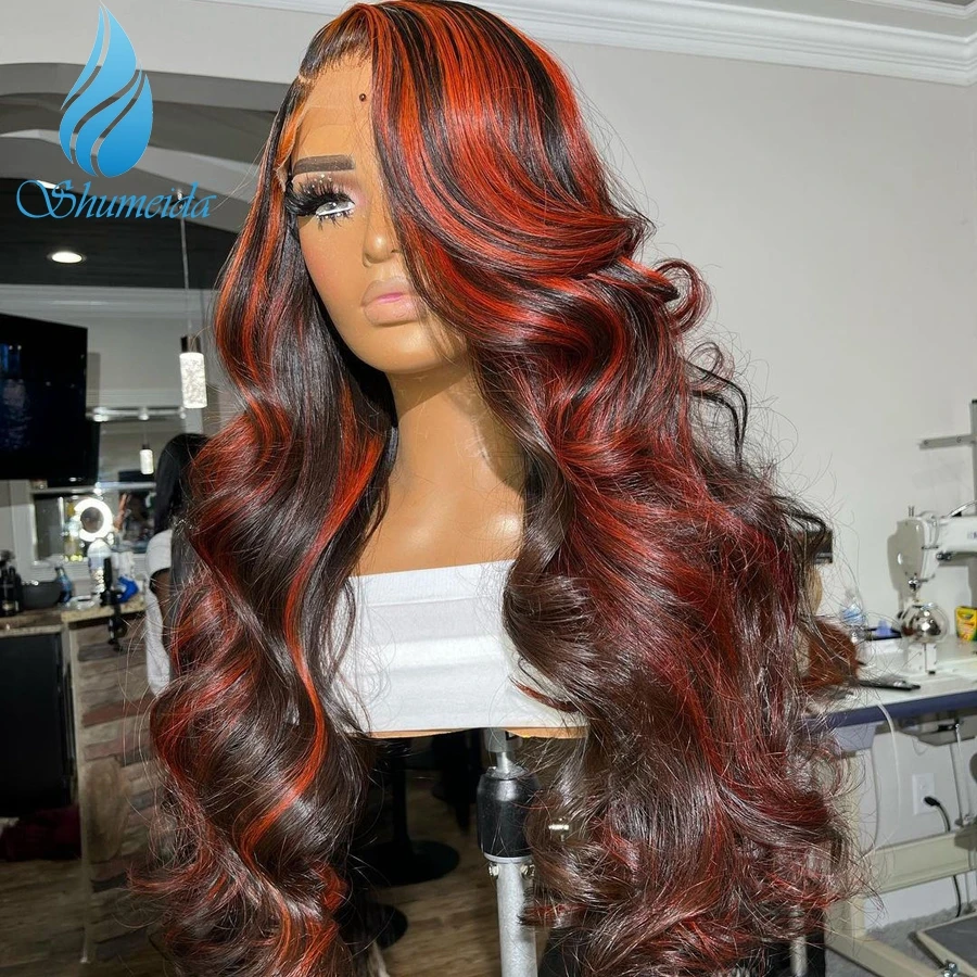 Shumeida хайлайтер красный цвет 13*4 кружевные передние человечески...