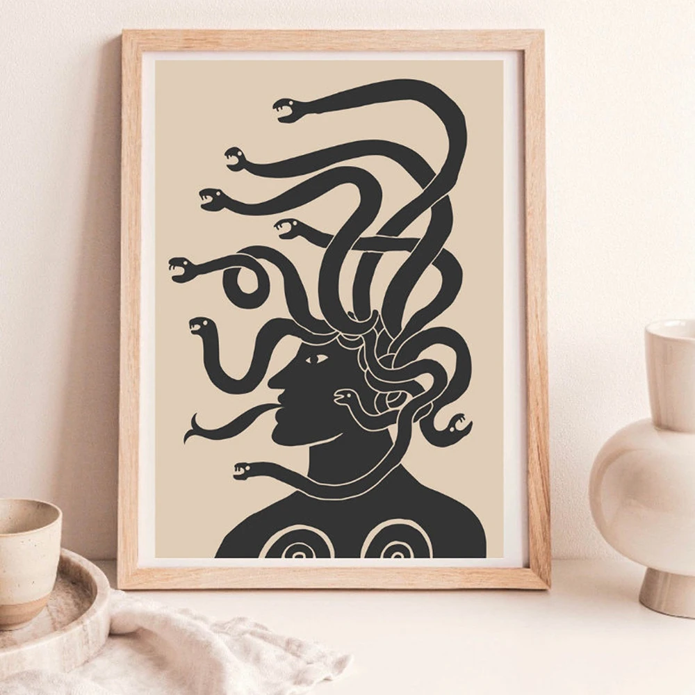 Настенный плакат Medusa с изображением змеи богини греческой мифологии, настенный плакат и принты, холст с изображением темной академии, картина, декор для эстетической комнаты