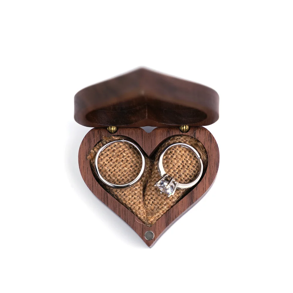 2022 деревянная коробка для колец в форме сердца, бархатный внутренний держатель, органайзер для колец, шкатулка для монет, чехол для свадебной церемонии