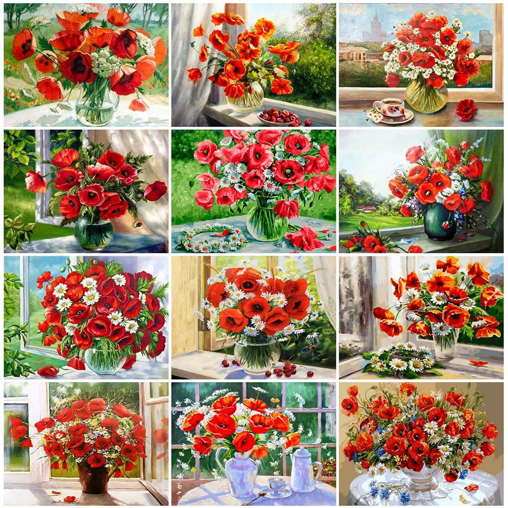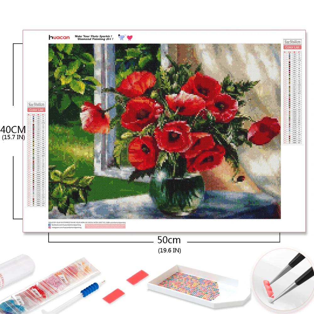 Алмазная живопись HUACAN, ваза, цветок, 5D, Алмазная мозаика сделай сам, Мак, полный набор для вышивки, украшение для дома