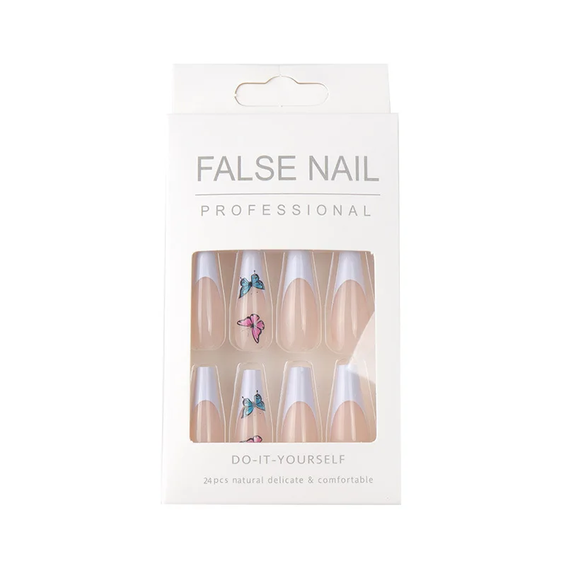 24 шт.коркор. накладные ногти с изображением синей бабочки, француз...