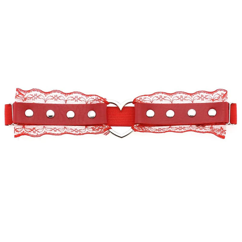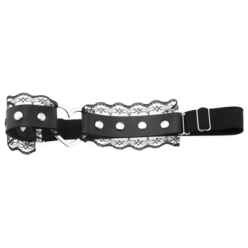 Подвязка для чулок Женская эластичная, пикантный кожаный пояс с заклепками в форме сердца, Готическая кружевная портупея, Ювелирное Украшение для косплея