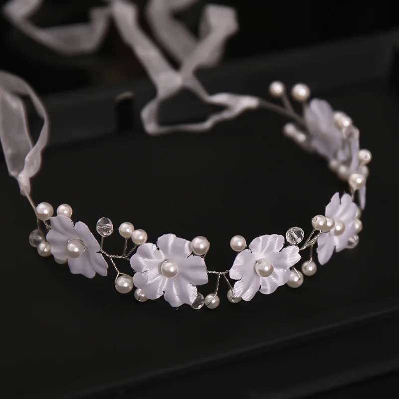 Женский обруч для волос с кристаллами, диадемы ручной работы с белыми жемчужинами и цветами, свадебные аксессуары для волос