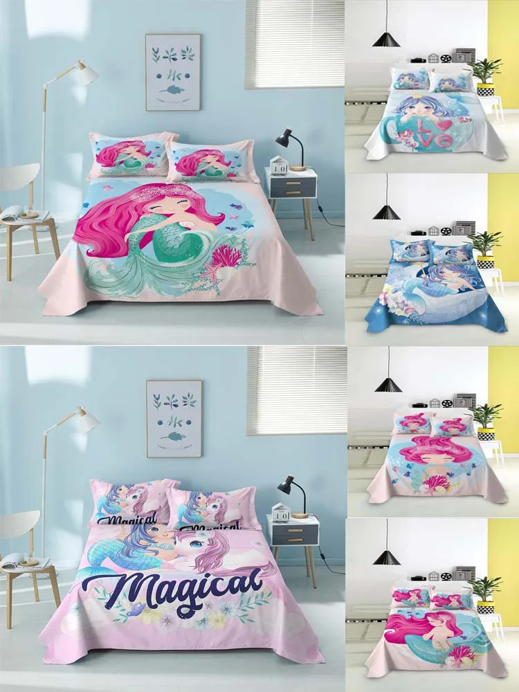 Комплект постельного белья для детской кроватки, пододеяльник для маленьких детей и наволочка, пододеяльник с изображением русалки для маленьких девочек и принцесс