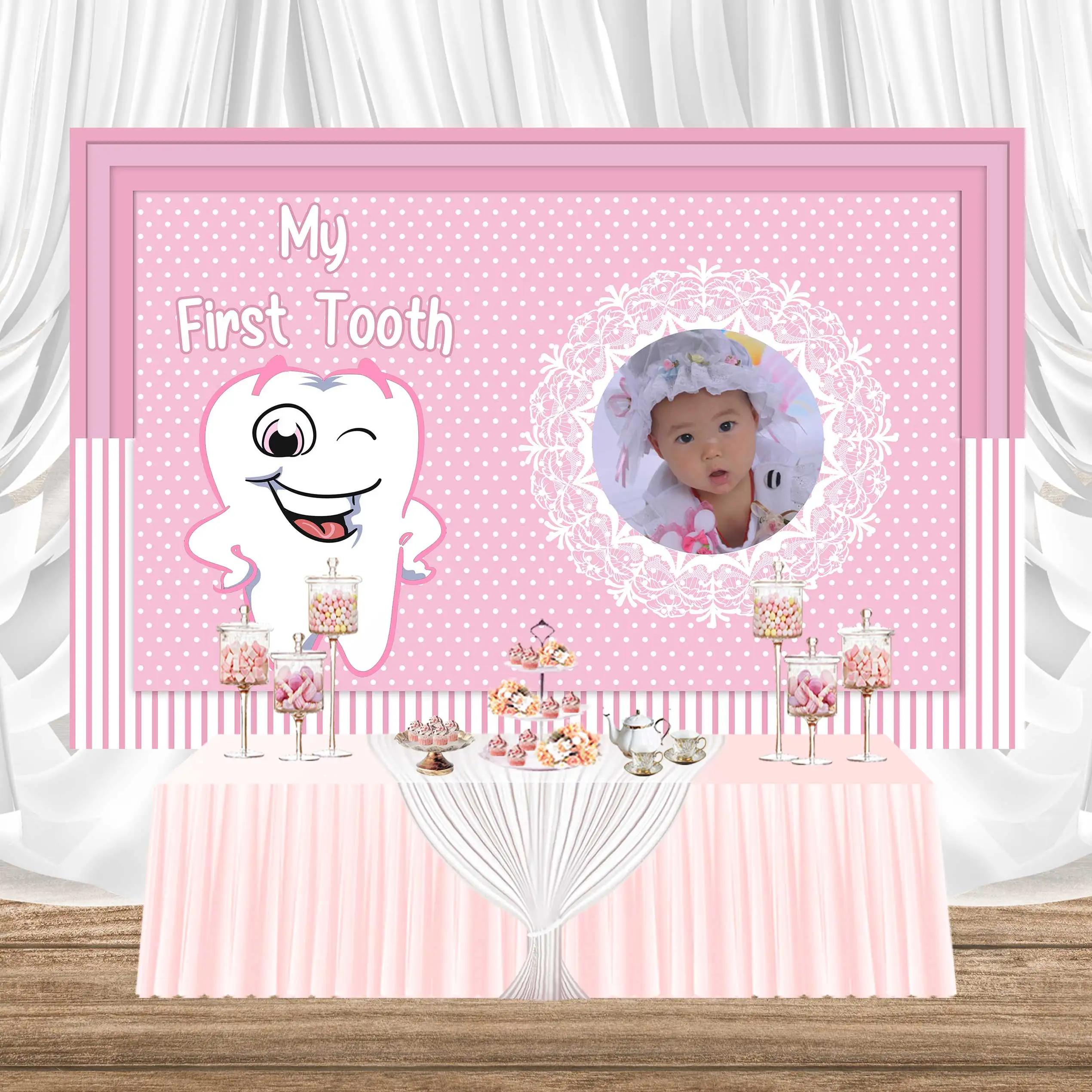 Фотофон SeekPro в розовую точку с моими первыми зубьями для детской...