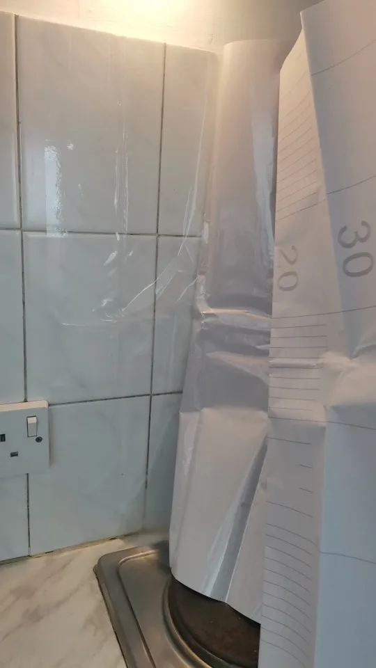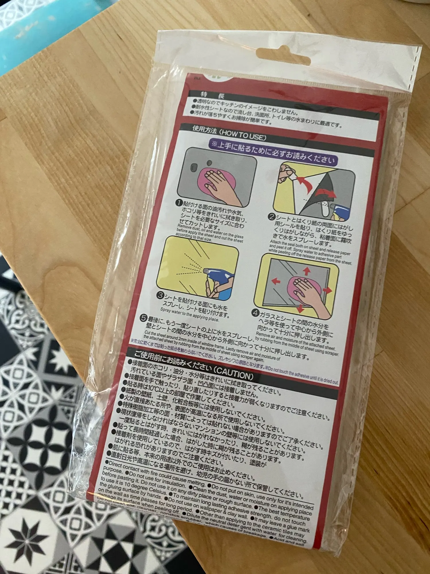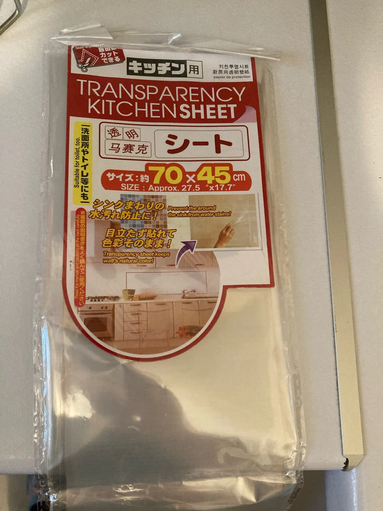 Норм, плёнка прозрачная наклеилась нормально, на у меня незаметные пузыри есть, это из-за зазоров между плитками. Размера хватает нормально. Мне было удобно разрезать на 4 части и расклеить их, плёнка идёт сразу клейкой. Клей покупать не надо и скотчем пользоваться не нужно.