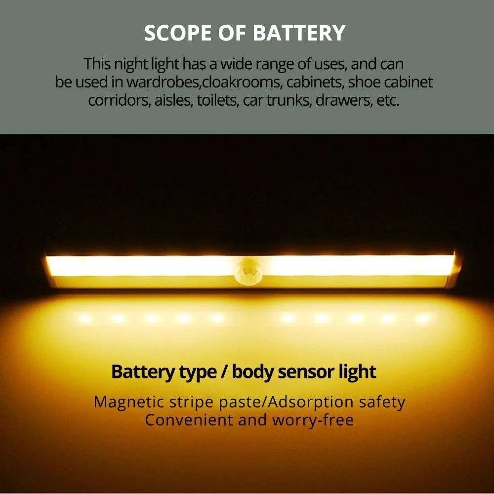 Ночник, с датчиком движения для шкафа, лестницы, кухни, 610 светодиодов
