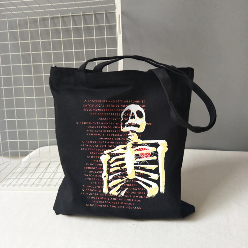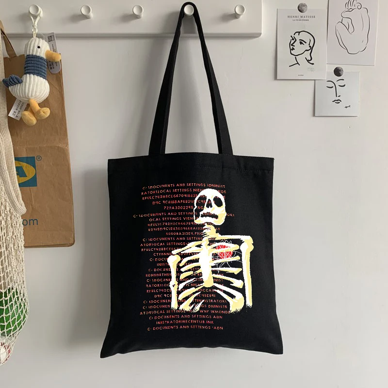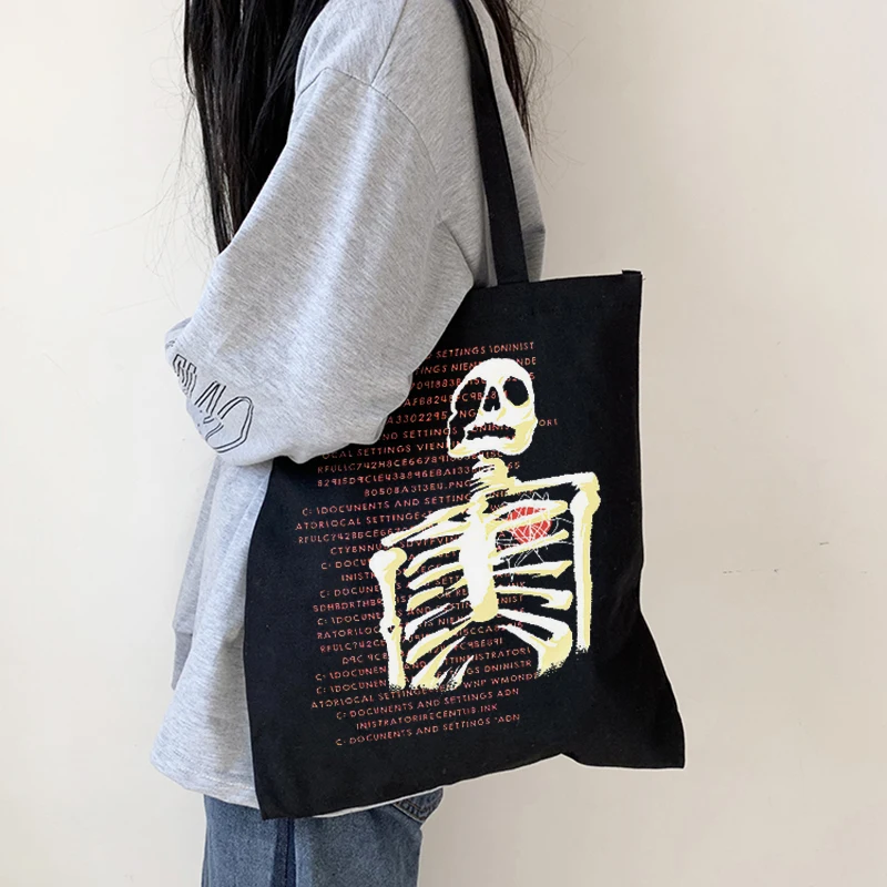 Холщовая Сумка в стиле аниме y2k, винтажная дамская сумочка на плечо с рисунком готического черепа, скелета в стиле хип-хоп, шоппер в эстетическом стиле с надписью