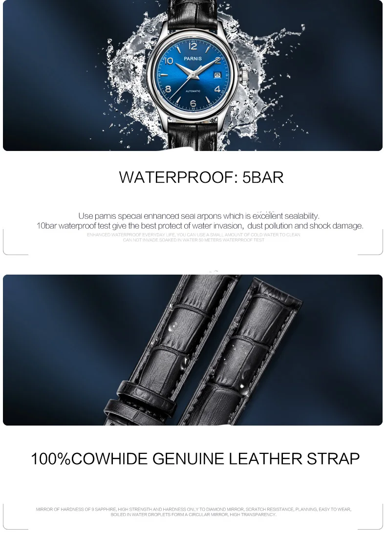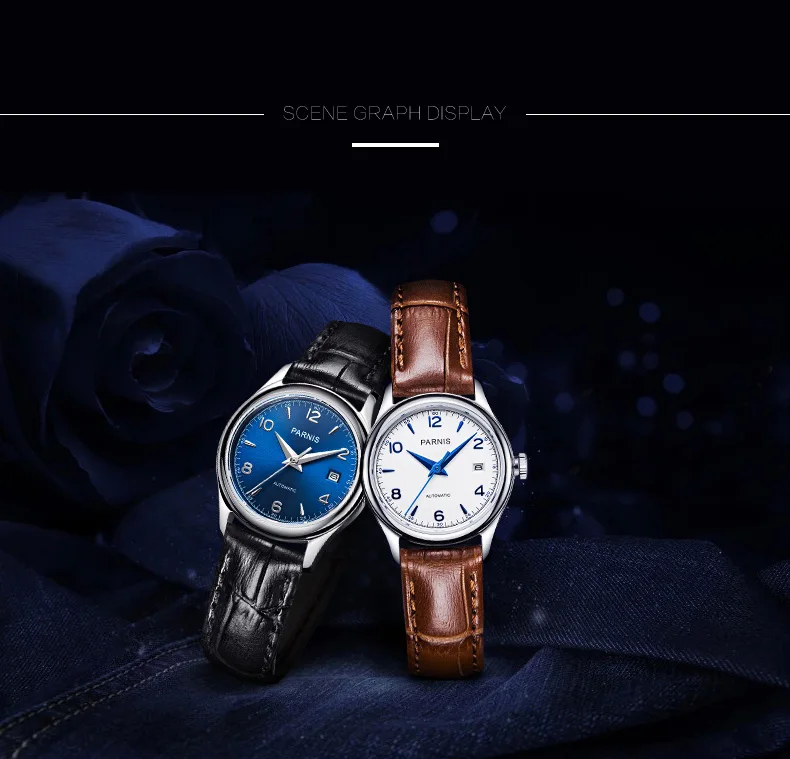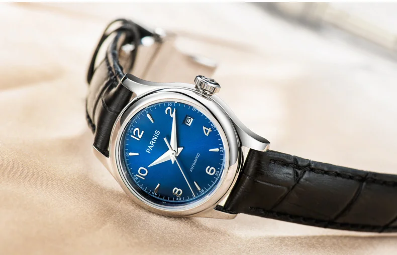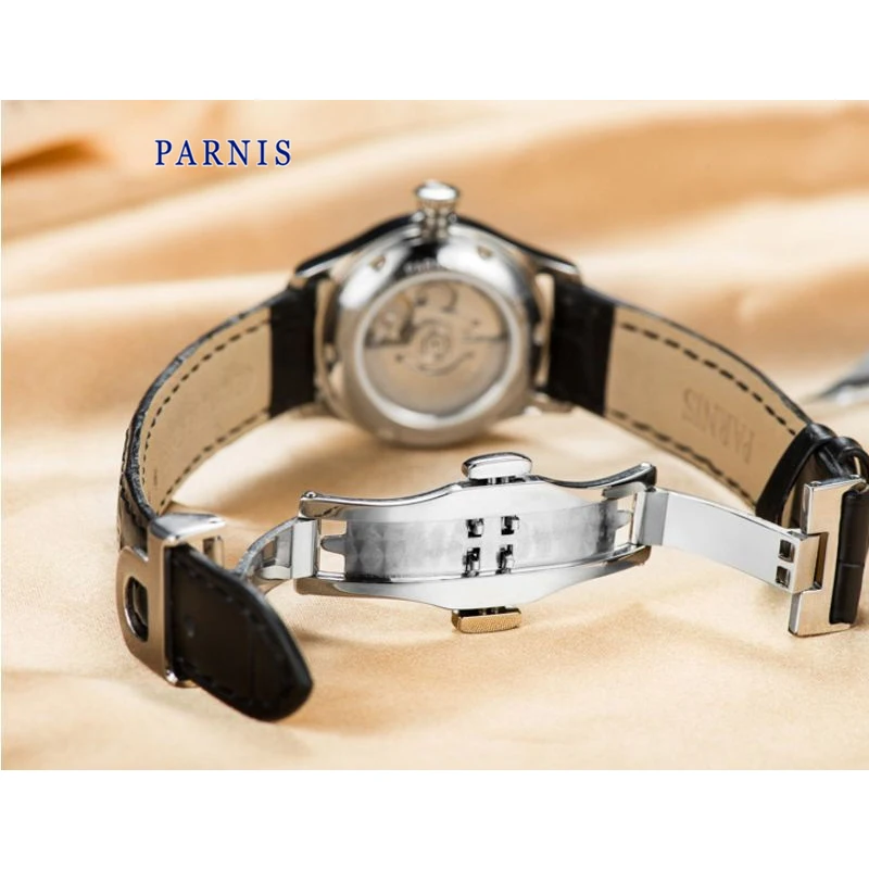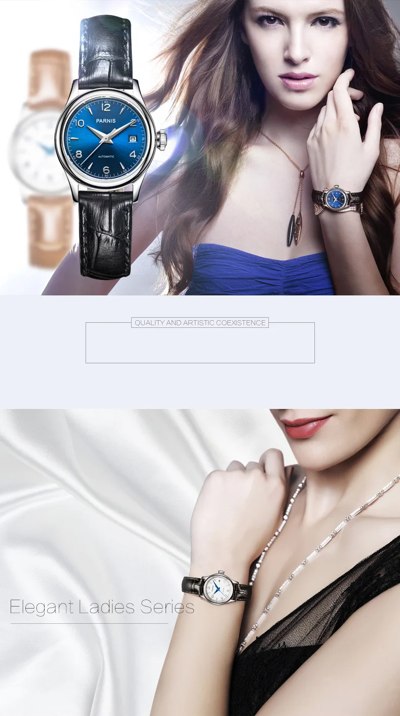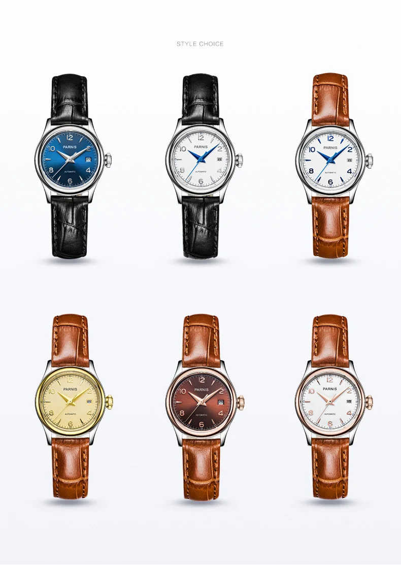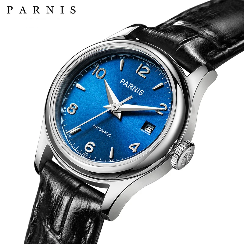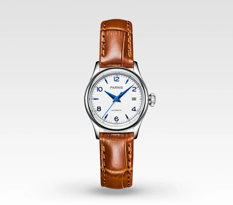 Часы наручные Parnis PA2113 женские механические, брендовые роскошные механические с сапфировым ремешком и кожаным ремешком, 26 мм