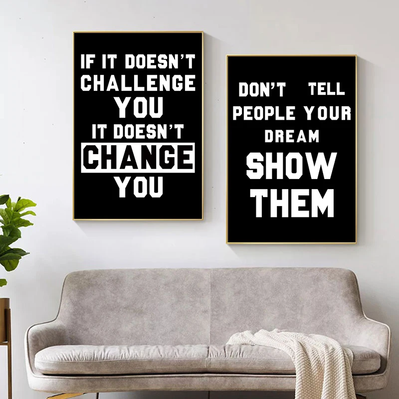 Современный черный простой девиз картина с цитатой печатает настенн...