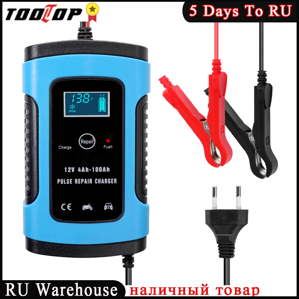 Полностью автоматическое автомобильное зарядное устройство для аккумуляторов 12 В 6 А, интеллектуальная быстрая зарядка, импульсное Ремонтное зарядное устройство для влажных, сухих свинцово-кислотных аккумуляторов