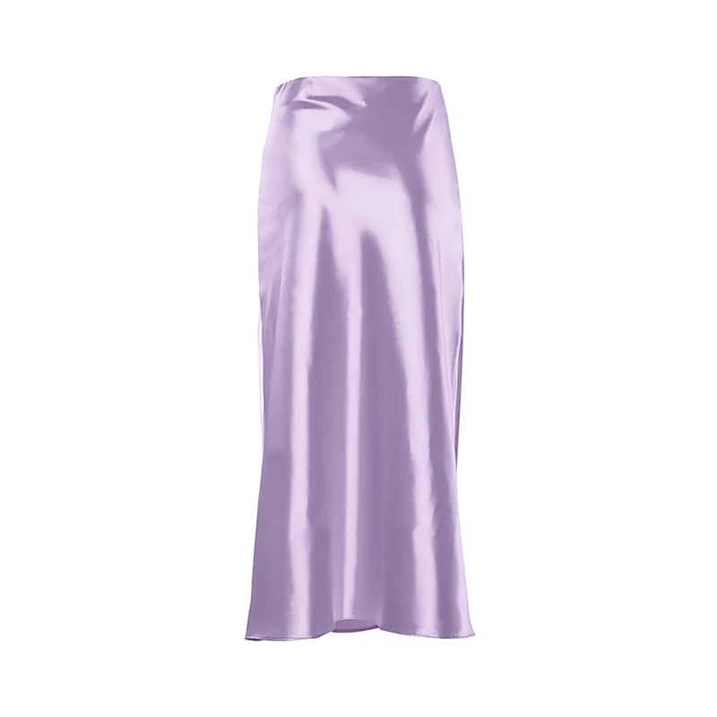 Однотонная фиолетовая атласная шелковая юбка, женская летняя длинная юбка с высокой талией, новинка 2022, элегантные женские офисные юбки миди, весна
