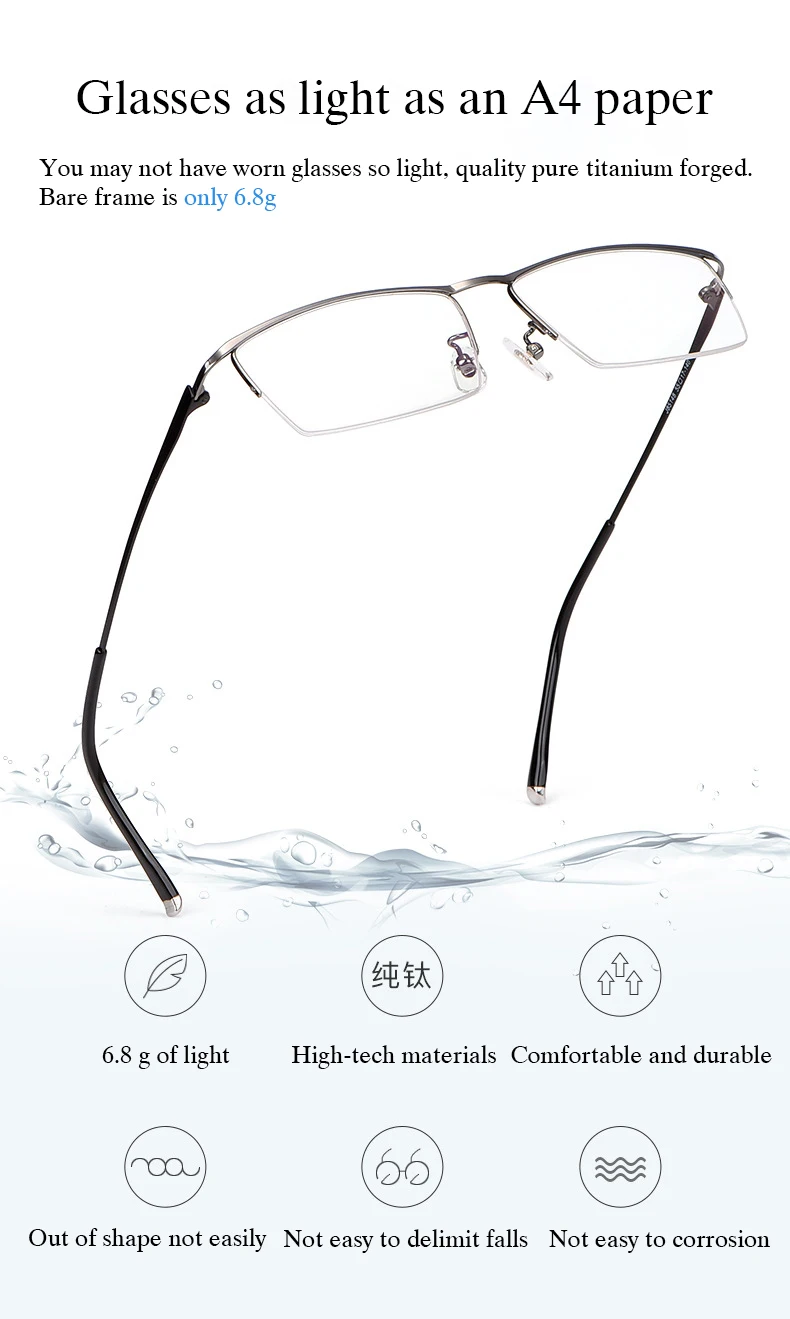 Новинка 2022, мужские полуоправы из чистого титана, мужские деловые...