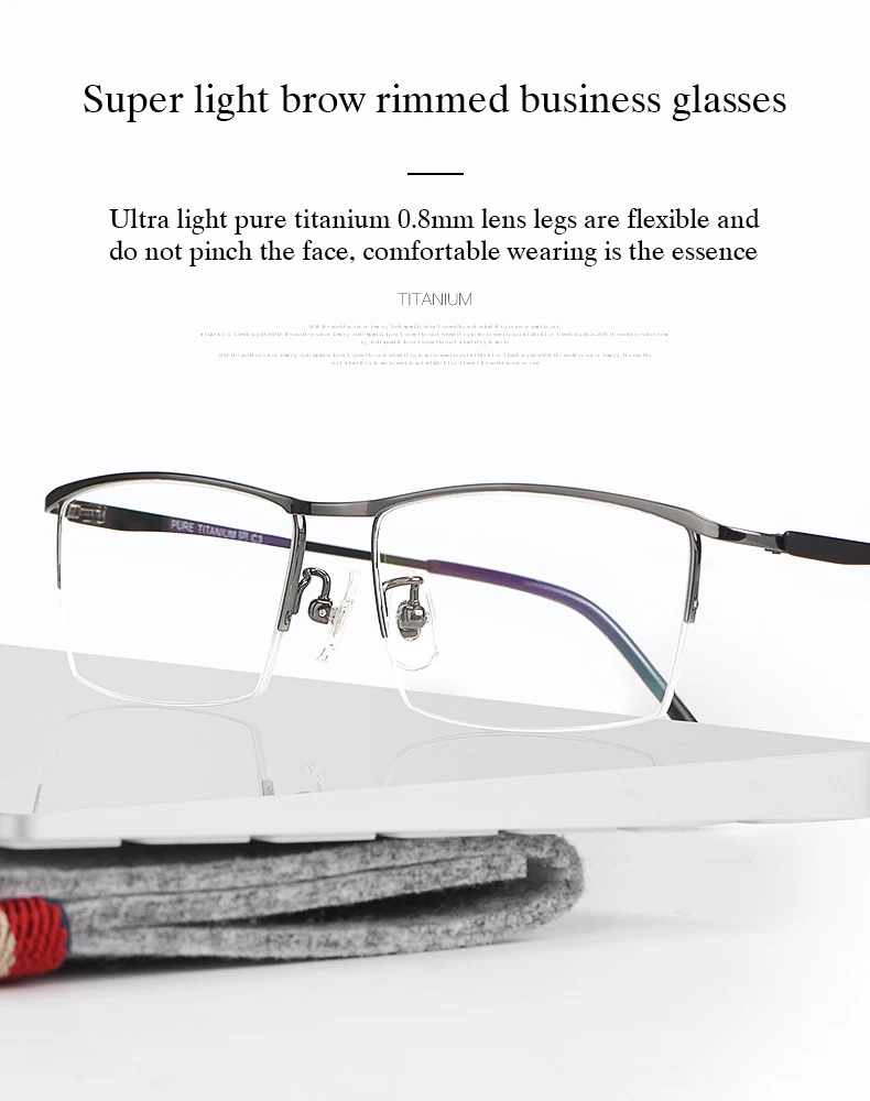 Оправа для очков Мужская из чистого титана, рецептурные Полуободков...