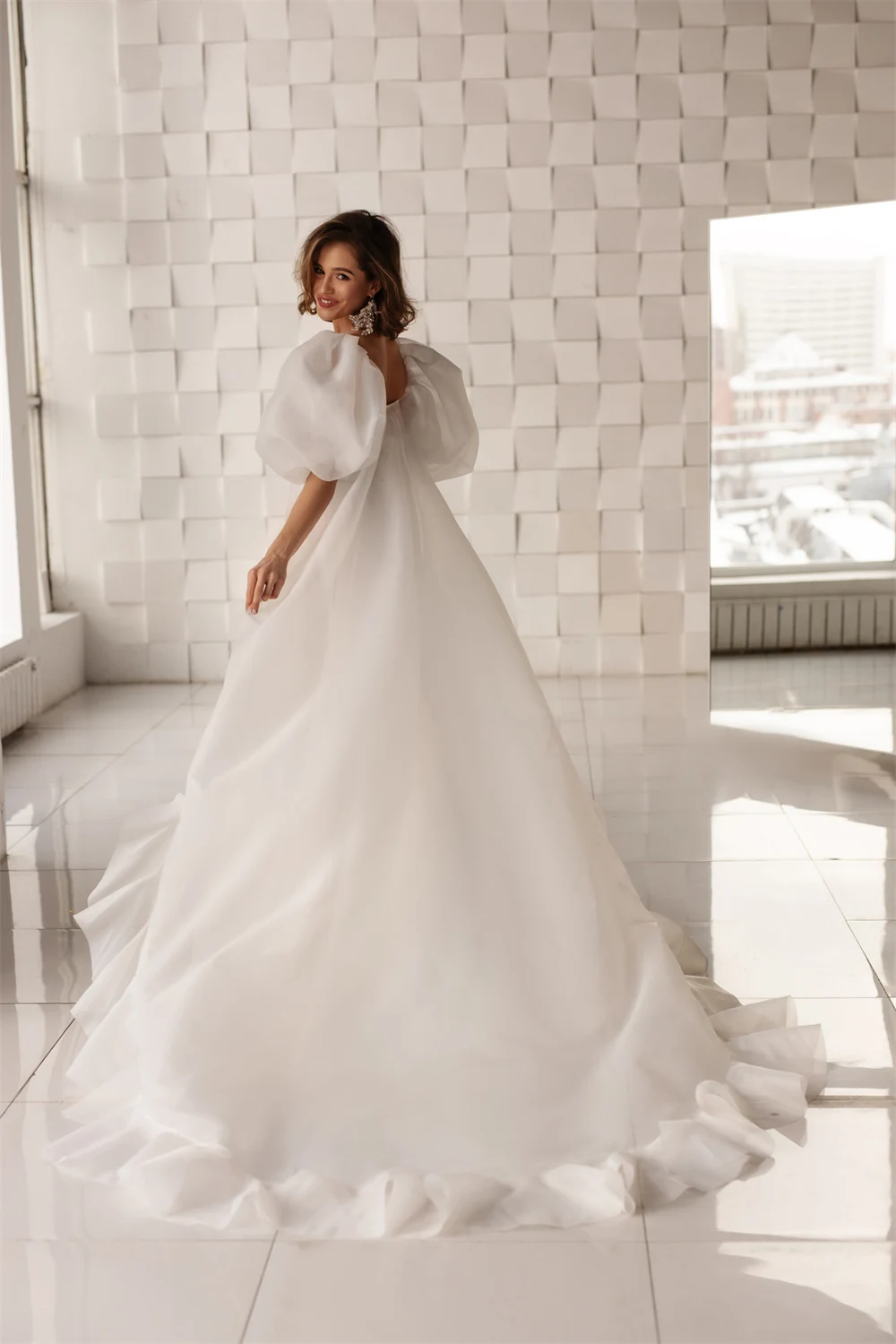 Женское свадебное платье It's yiiya, белое платье с пышными рукавами и разрезом на лето 2019