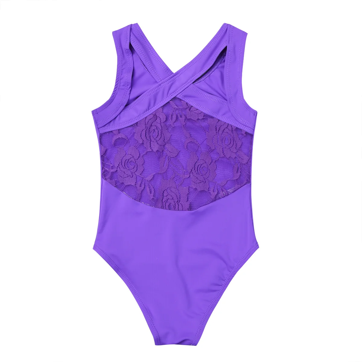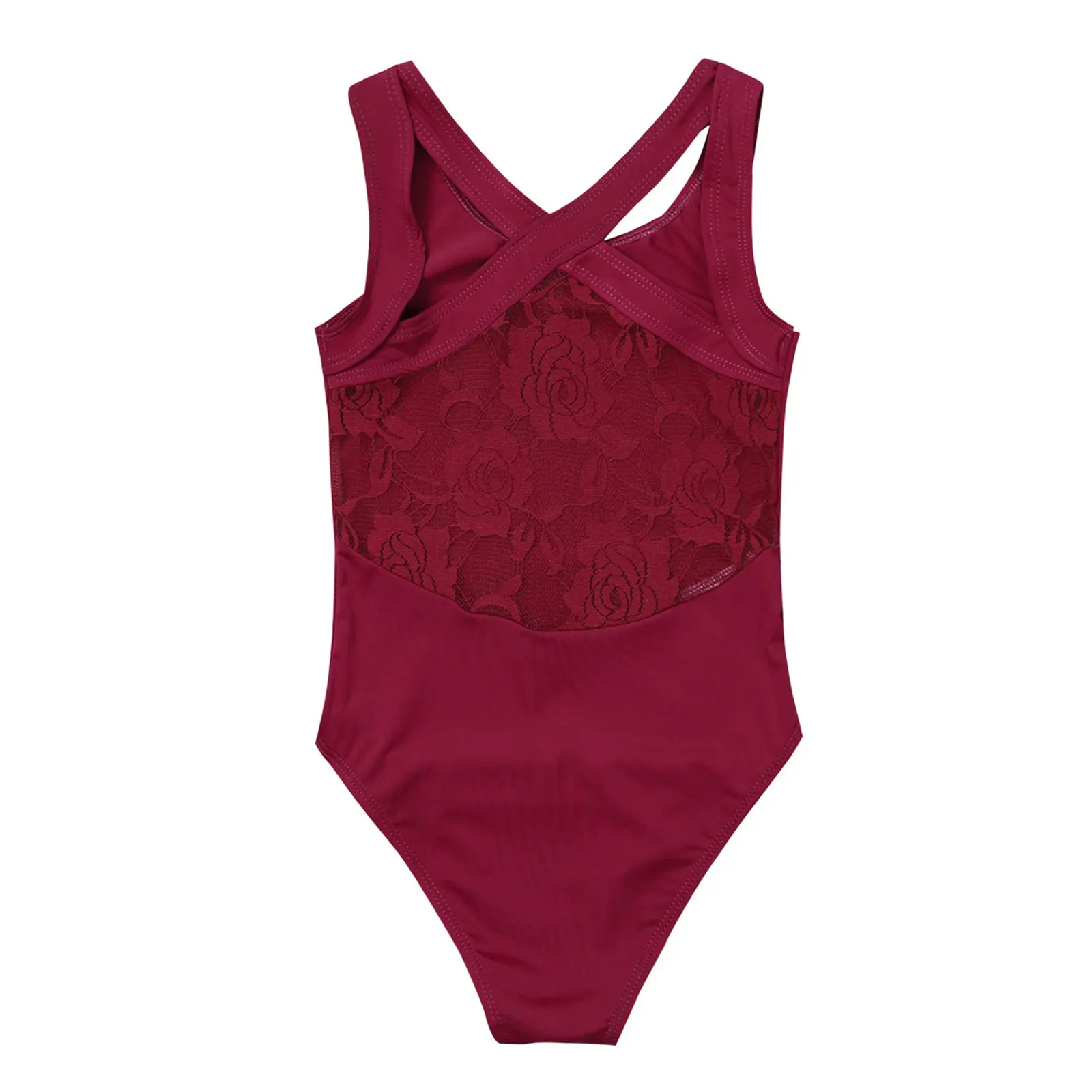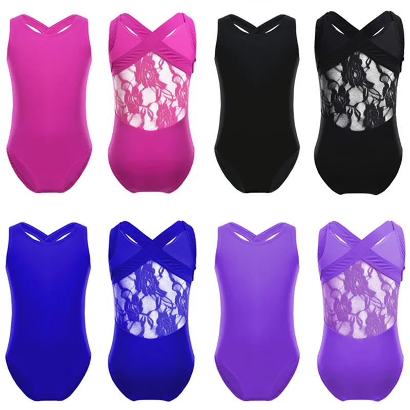 Гимнастическое балетное трико для девочек, балетное трико без рукавов, Детский комбинезон для балета с кружевной спинкой, танцевальная одежда для балерины