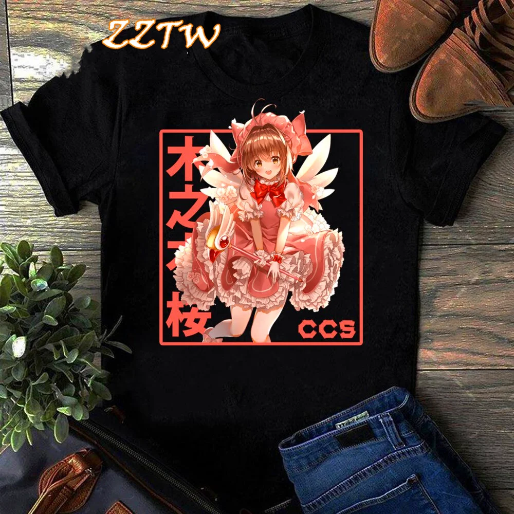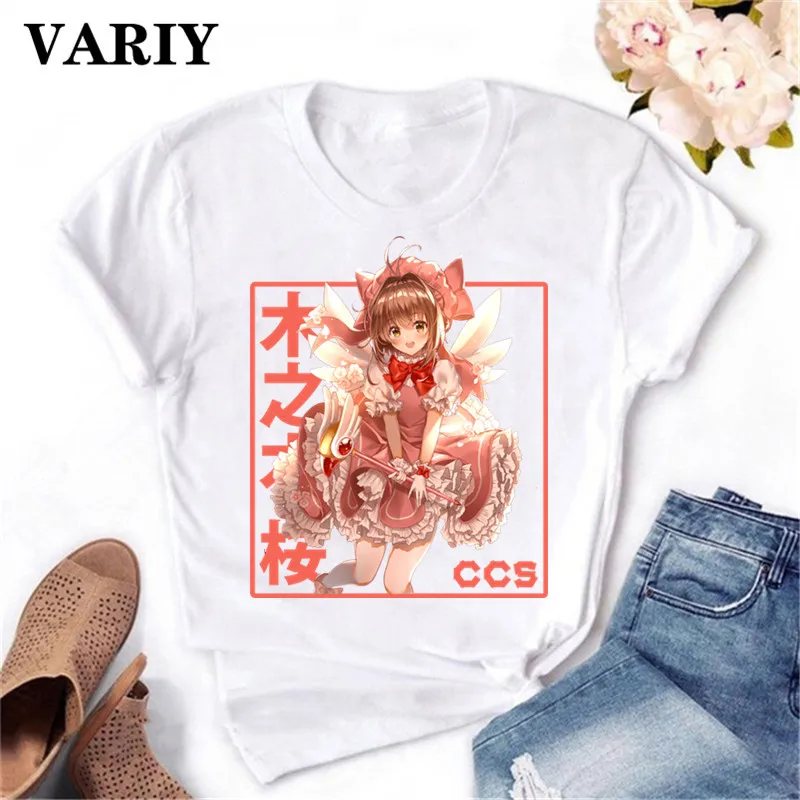Женская футболка с рисунком из мультфильма «Sakura Card Captor Magic», забавная женская футболка в стиле Харадзюку с коротким рукавом, Ulzzang, шикарные женские футболки