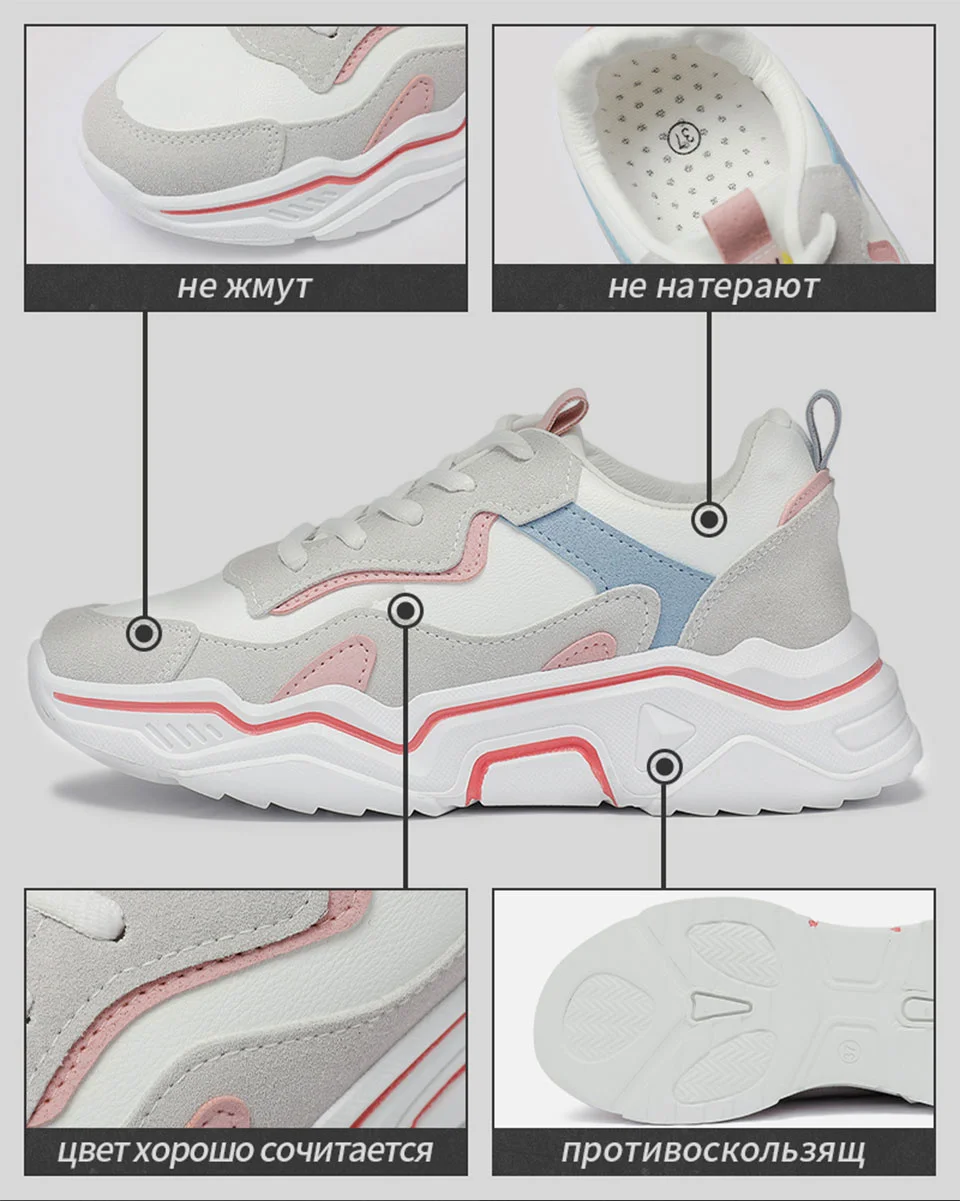 Кроссовки сестре взяла, по размеру сказала в размер, подошли идеально, смотрятся аккауратно и не громоздко, цветовая гамма отлично подобрана, стильные, ходить одно удовольствие в них, ноги как в тапочках, за пару часов что в них она провела ноги не вспотели супер