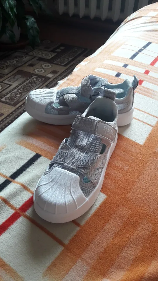хорошие летние , легкие. Но к сожалению на обуви не указан размер, за что и сняла одну звезду. Еще не меряли и не знаю соответствует размер или нет.