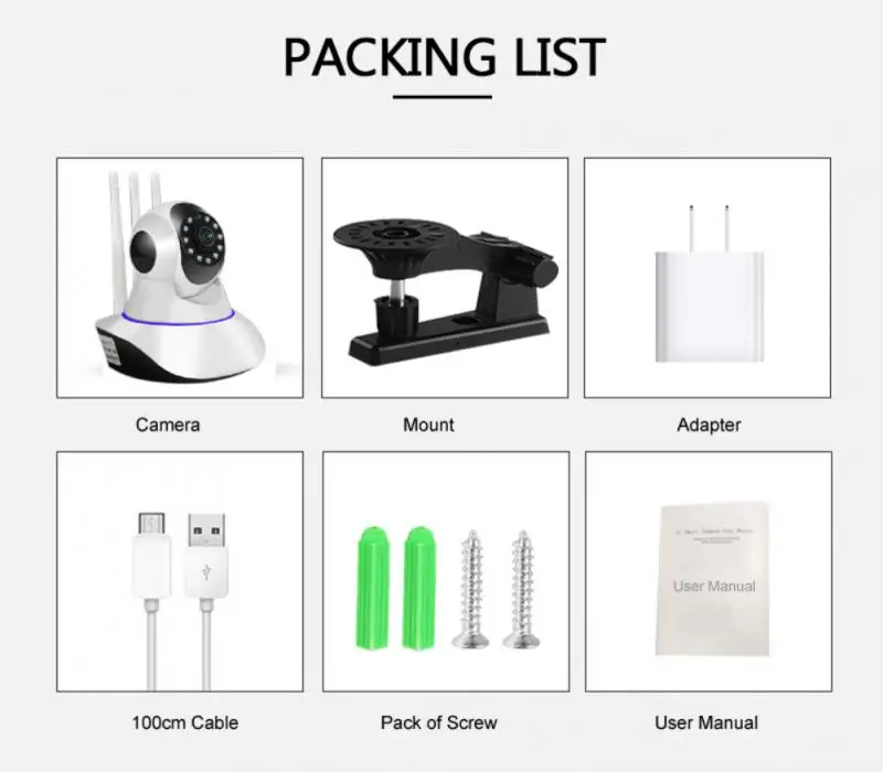【 1080P WiFi ip-камера 】 1080P видео высокой четкости и изображения передают чрезвычайно четкие и точные сцены в реальном времени. Живой поток можно получить через iOS / Android мобильный телефон/iPad/планшет/ПК и т. д. (Примечание: камера работает с 2,4G WiFi, нет поддержки 5G сети).