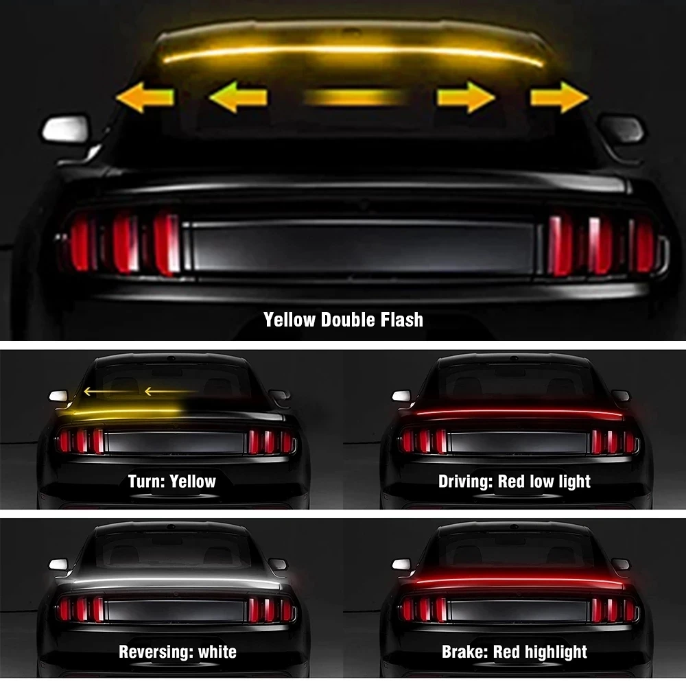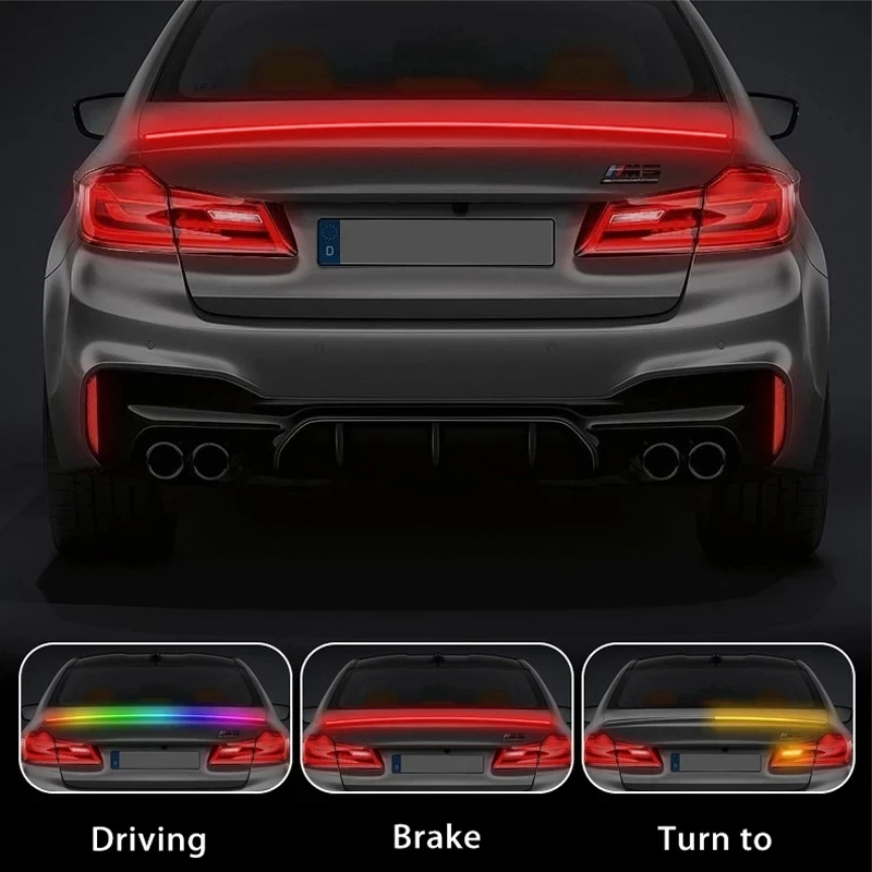 Универсальный светодиодный Автомобильный задний стоп-сигнал 120 см, красочный автомобильный спойлер 12 В, Автомобильный светодиодный стоп-сигнал, задний хвост, предупреждающие гибкие полосы