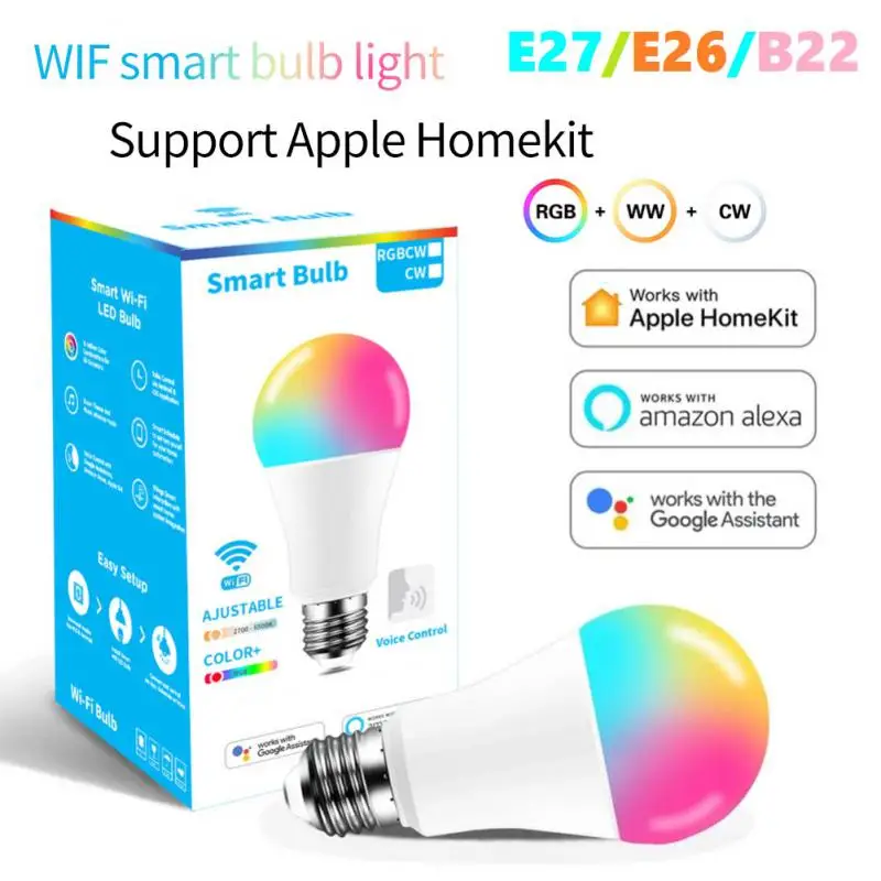 Умная лампа Aubess с Wi-Fi, E27E26B22 RGB + CW, 9 Вт, Энергосберегающая светодиодная лампа с регулировкой яркости, работает с Alexa Google Home Cozylife Homekit
