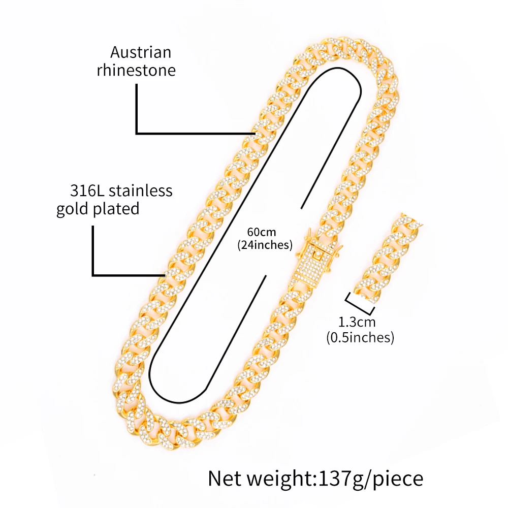 Ожерелье из кубинской панцирной цепи Майами мужское, комплект в сти...